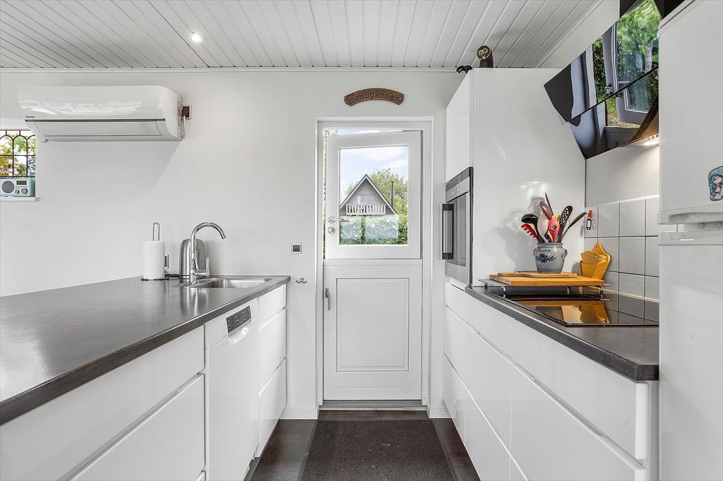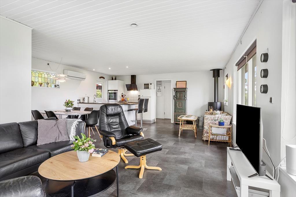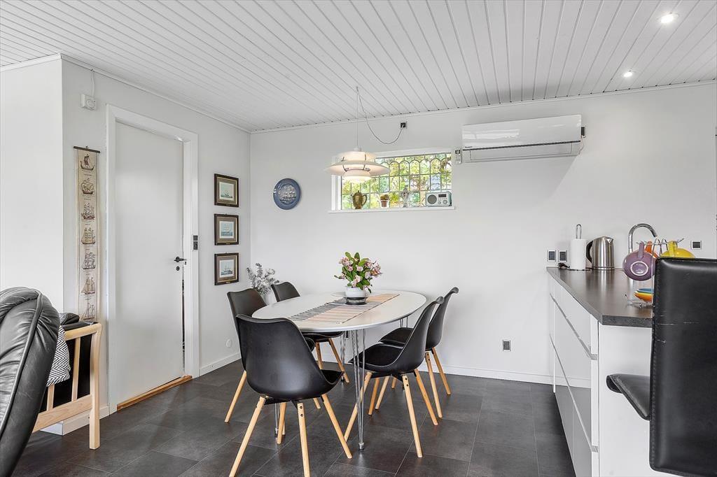 Når du træder indenfor i sommerhuset, bliver du mødt af en varm og indbydende atmosfære, der straks får dig til at føle dig hjemme. De åbne rum, lyse farver og moderne indretning skaber en hyggelig og komfortabel base for din ferie. Stuen er det perfekte sted til at slappe af, måske foran en god bog eller til en film, mens køkkenet giver dig alle de faciliteter, du har brug for til at tilberede feriens måltider. Sommerhuset har også et dejligt spiseområde, hvor du kan nyde en middag i godt selskab. De to soveværelser giver gode rammer for en rolig nats søvn, og du vil straks mærke den afslappede stemning, der gennemsyrer hele huset.