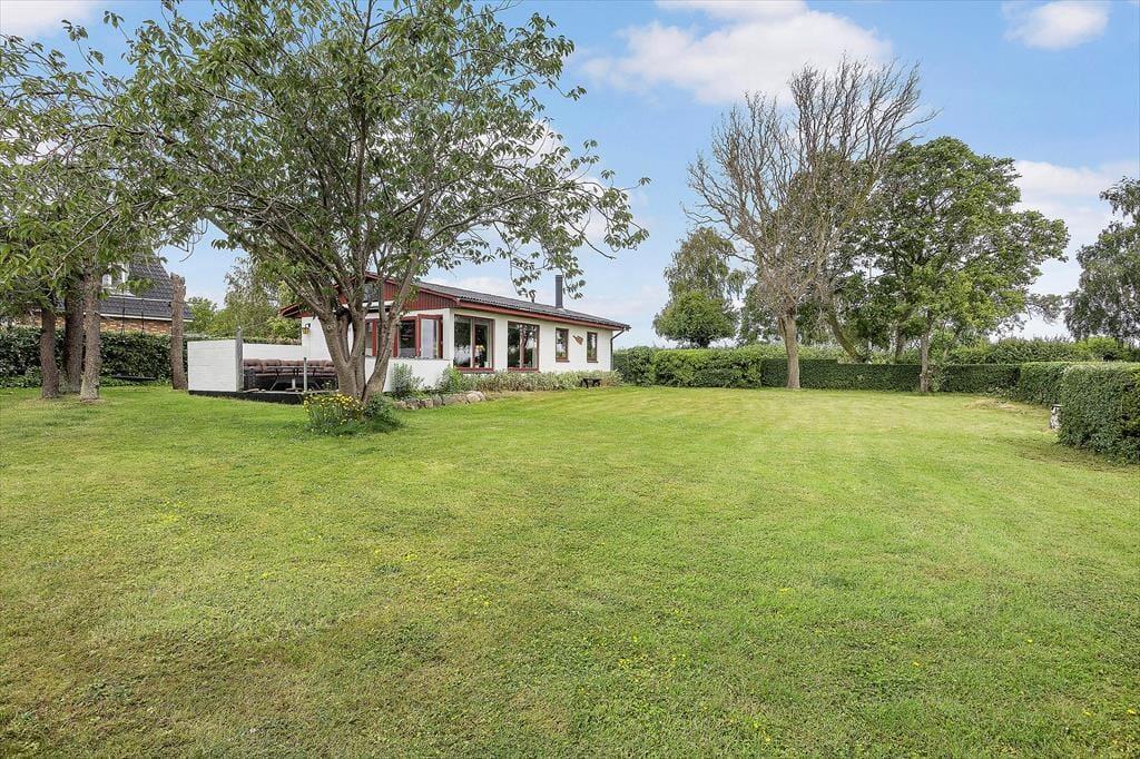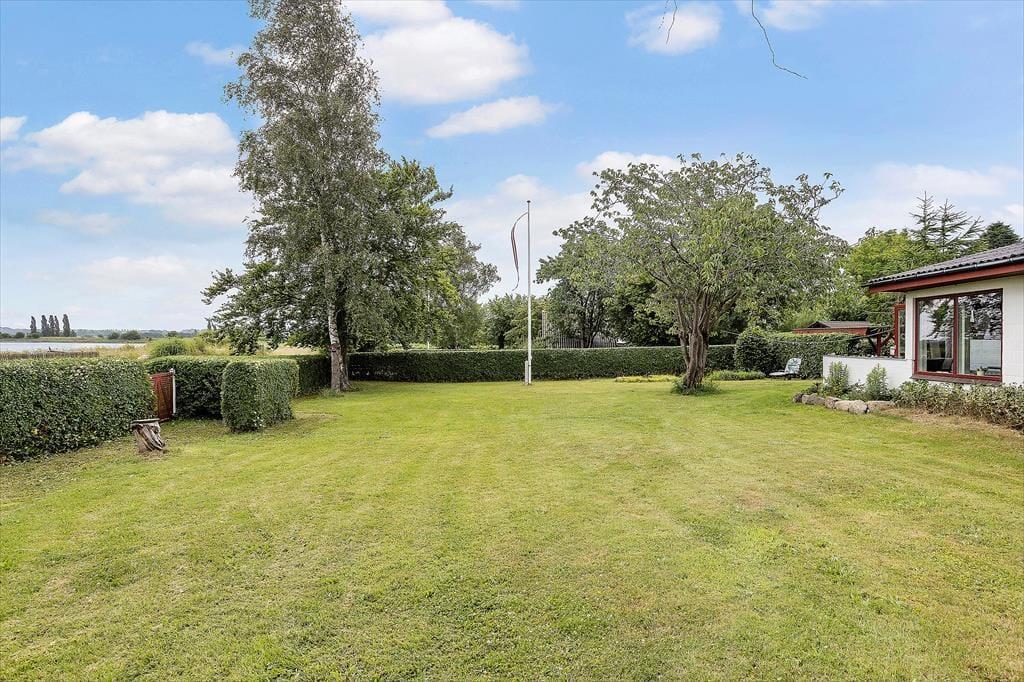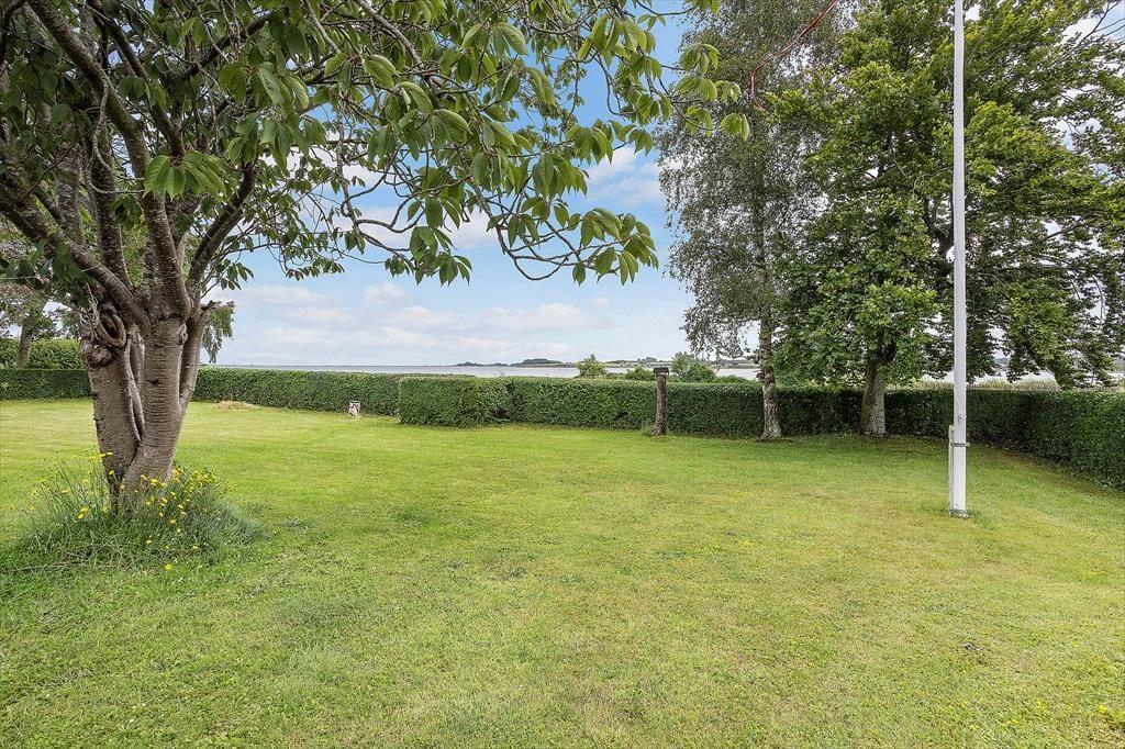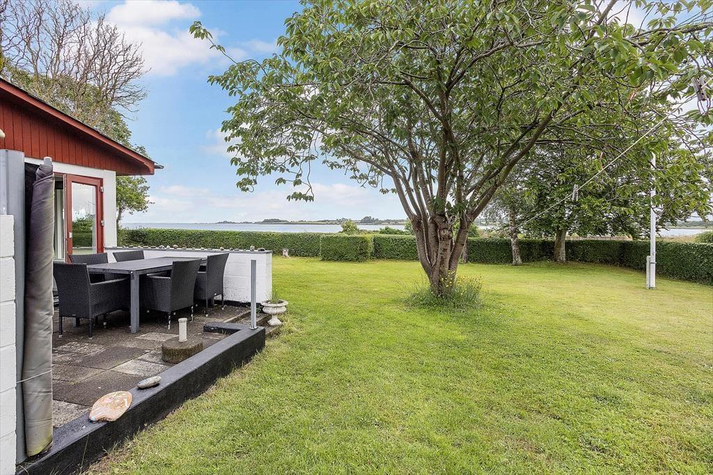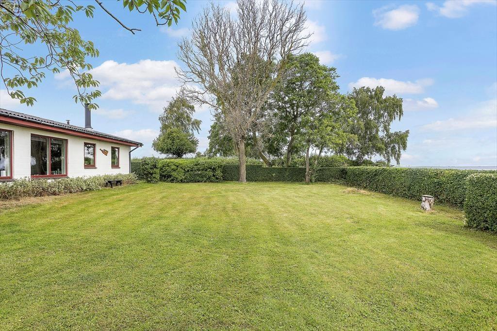 Udenfor venter en dejlig have og terrasse, hvor du kan nyde solen og den friske luft. Den grønne plæne er perfekt til en afslappende stund i solen eller til at lege og hygge sig med børnene. På den store terrasse kan du nyde måltider udendørs, og om aftenen er det en skøn oplevelse at tænde grillen og tilberede din middag under åben himmel. Uanset om du ønsker at sidde med en kop kaffe og læse en god bog eller blot slappe af og nyde den rolige atmosfære, så er der rig mulighed for det her. Fra haven kan du nyde den smukke natur, og den korte afstand til vandet betyder, at du kan høre bølgerne og mærke den forfriskende havluft.