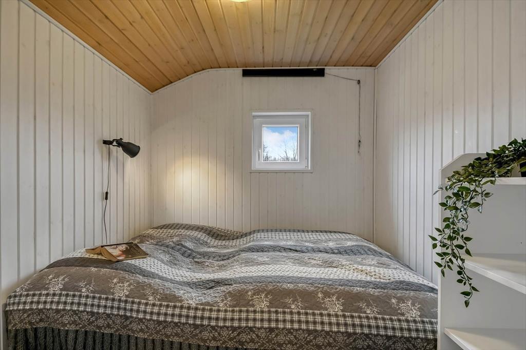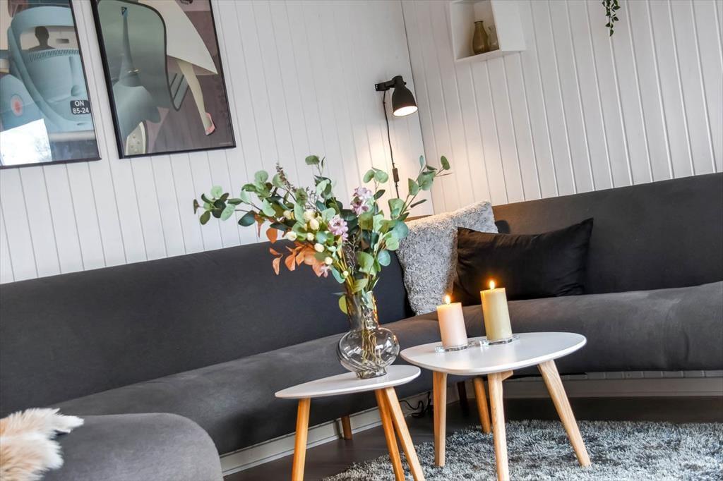 Indenfor mødes du af en varm og indbydende stemning. Det lyse opholdsrum har en dejlig brændeovn, der spreder hygge på kølige dage, mens de store vinduespartier lader dagslyset strømme ind og skaber en skøn forbindelse til de grønne omgivelser udenfor. Her kan I samles omkring spisebordet til lange middage eller slå jer ned i sofahjørnet med en god bog. Køkkenet ligger i åben forbindelse med stuen, så ferielivet kan leves ubesværet, uanset om der laves mad eller hygges. Huset byder også på tre gode soveværelser og et badeværelse, der tilsammen danner rammen om en afslappende ferie i hjemlige og komfortable omgivelser.