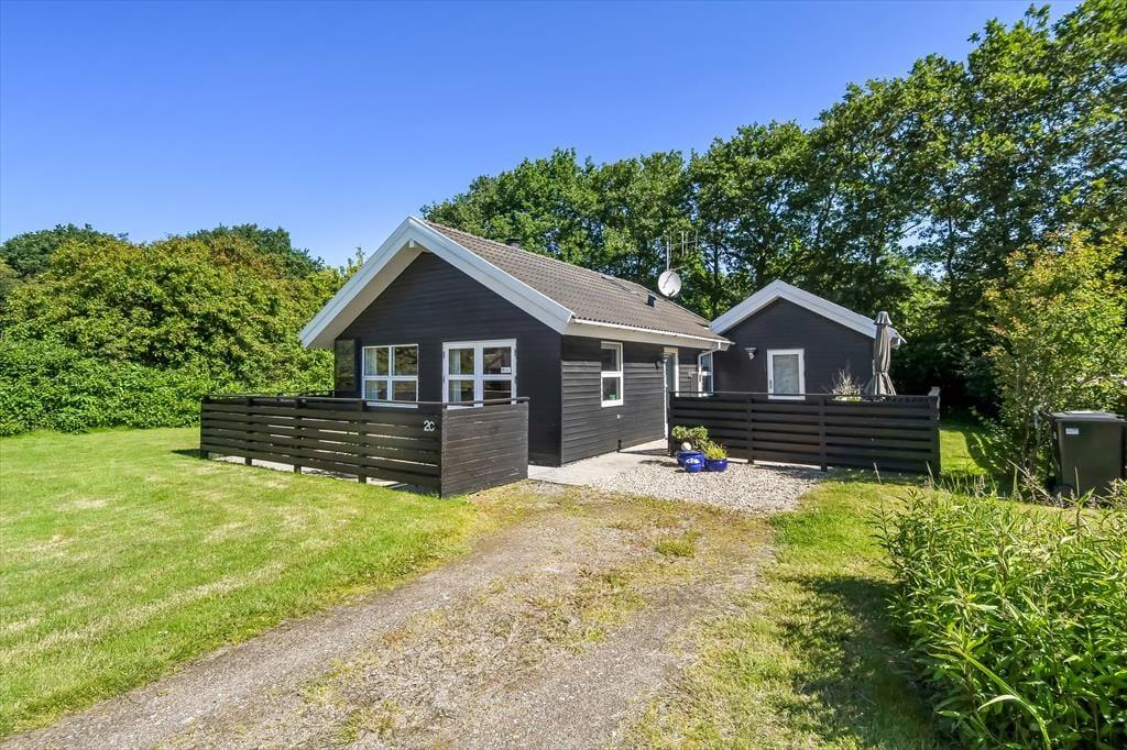 Stråler solen fra en blå himmel, gør at I måske får lyst til at tilbringe mest muligt af dagen ude i det fri. I så fald kan I flytte alt lige fra morgenmaden til leg, avislæsning og hyggesnak ud på sommerhusets grund, der er enkelt anlagt med græsplæne og terrasseområder. De to terrasser er begge lukkede af hegn, der giver læ og sikrer privatlivet, når I slapper af i havemøblerne.