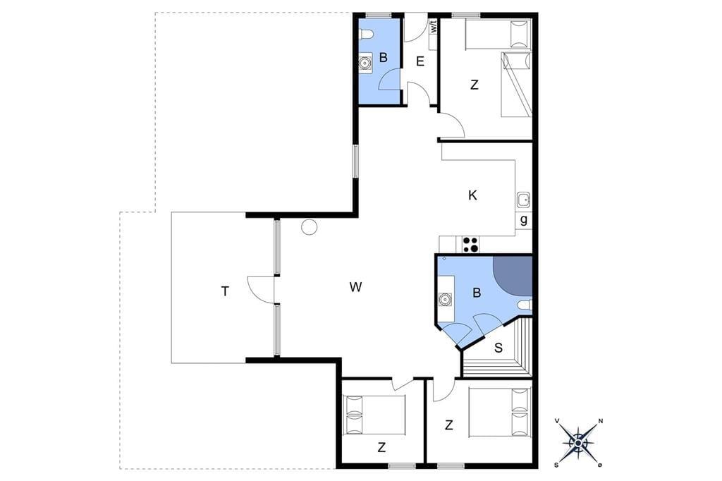 Sommerhuset kan oplagt beskrives som en både funktionel og hyggelig ejendom på 91 m2, der har en smart planløsning til seks feriegæster. De tre soveværelser er praktisk fordelt i begge ender af sommerhuset, og derudover finder I et gæstetoilet med vaskemaskine samt et badeværelse. Husets badeværelse fortjener et par ekstra ord med på vejen, for udover bruser og gulvvarme er der også spabad og sauna, så I virkelig kan slappe af og nyde livet. Hyggestunderne kan også foregå i stuen, som er et stort og lyst rum med loft til kip, brændeovn og åben forbindelse til et velindrettet køkken.