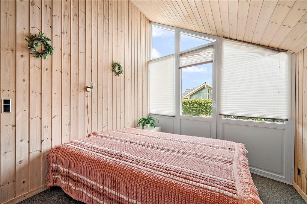 Sommerhuset er opført i 2005 og er en god og gedigen murstensejendom på 129 m2. Med andre ord kan I se frem til ordnede forhold og masser af plads til feriens hyggestunder – der blandt andet kan foregå i det lyse opholdsrum, hvor køkken og stue ligger i åben forbindelse. Her i opholdsrummet er der gulvvarme under fliserne og varmepumpe, og det komfortable møblement sørger for, at I rigtigt kan slappe af og nyde livet. Når I virkelig skal koble af, er der også mulighed for at gå i spabad og sauna på det største af husets to badeværelser, og nattesøvnen kan foregå på de tre gode soveværelser og på hemsen, der er udstyret med to madrasser.