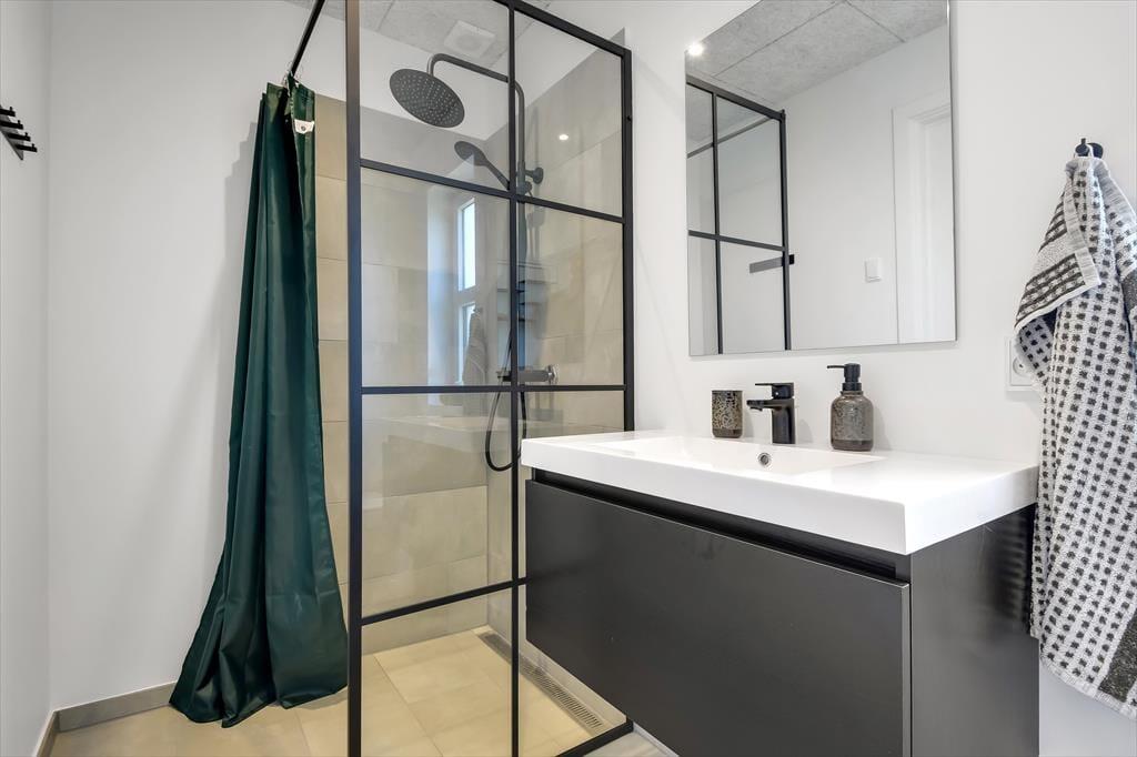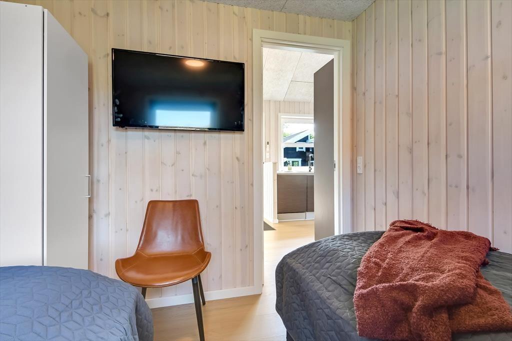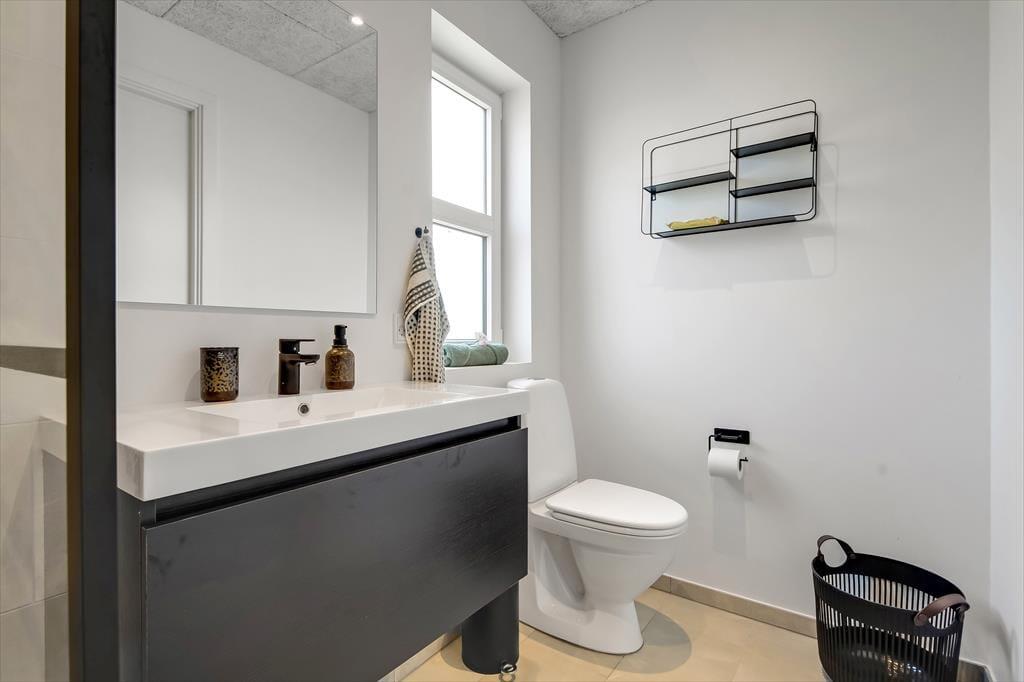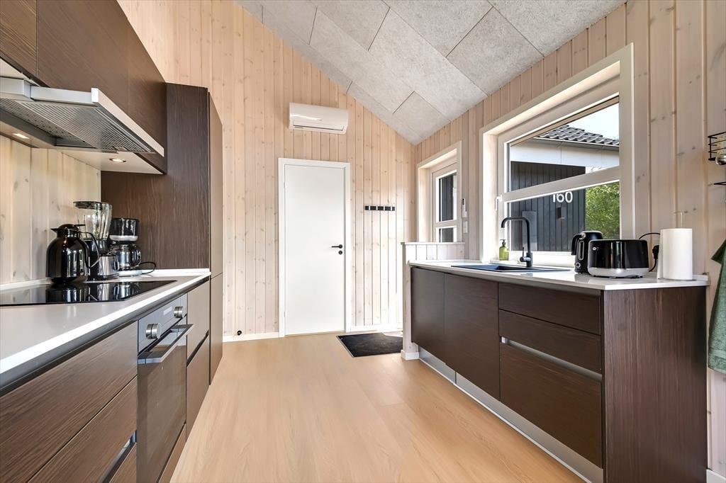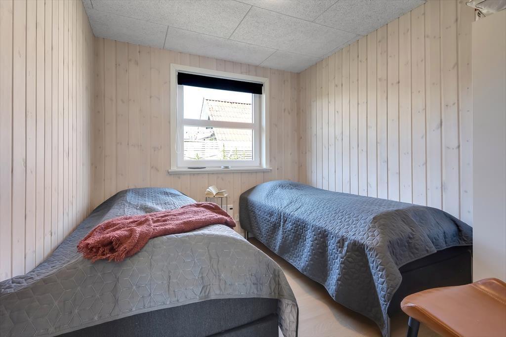 Der er gjort god brug af hver eneste kvadratmeter i sommerhuset, og planløsningen passer fint til fire personer. De to gode soveværelser og det stilfulde badeværelse er alle rare rum at opholde sig i – men det skønneste er nu alligevel stuen, der har loft til kip, store vinduer og en stige op til en hyggelig hems. Interiøret er både kønt og komfortabelt, og takket være den åbne forbindelse til stuen er det nemt for dig at smutte hen for at brygge mere kaffe eller påbegynde madlavningen. Når den varme drik eller måltidet står klart, kan du og dine kære slå jer ned ved spisebordet, hvis ikke I rykker den fælles hyggestund ud på det tilstødende terrasseareal.