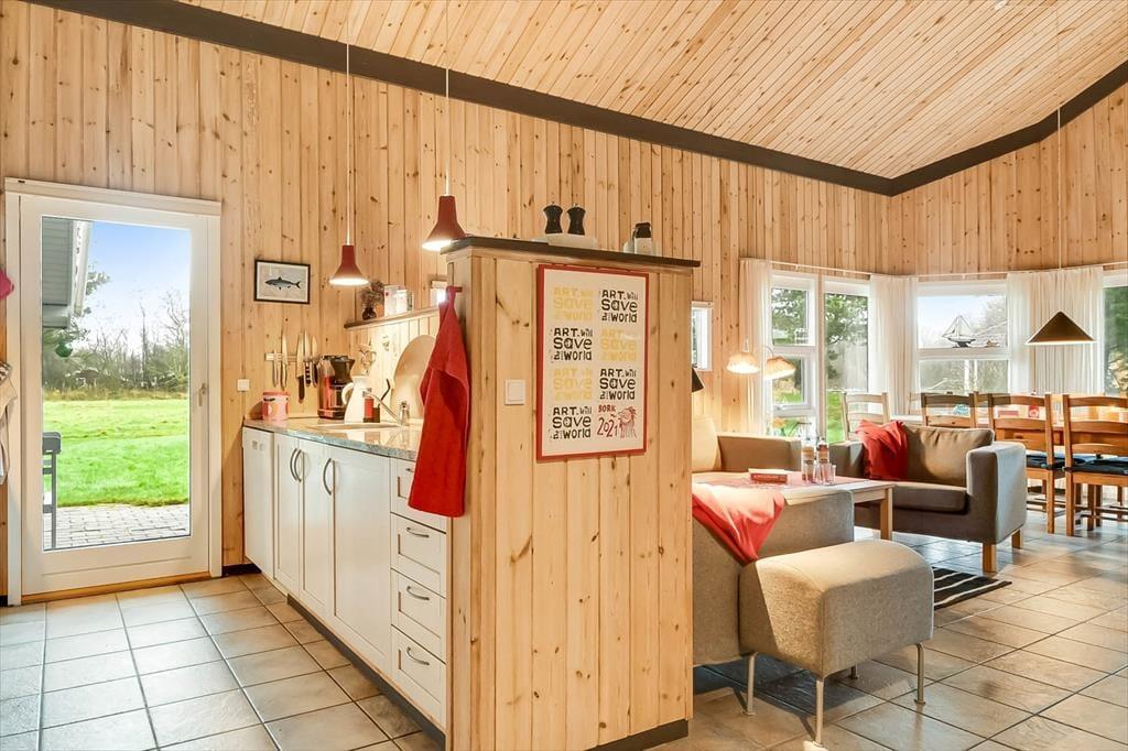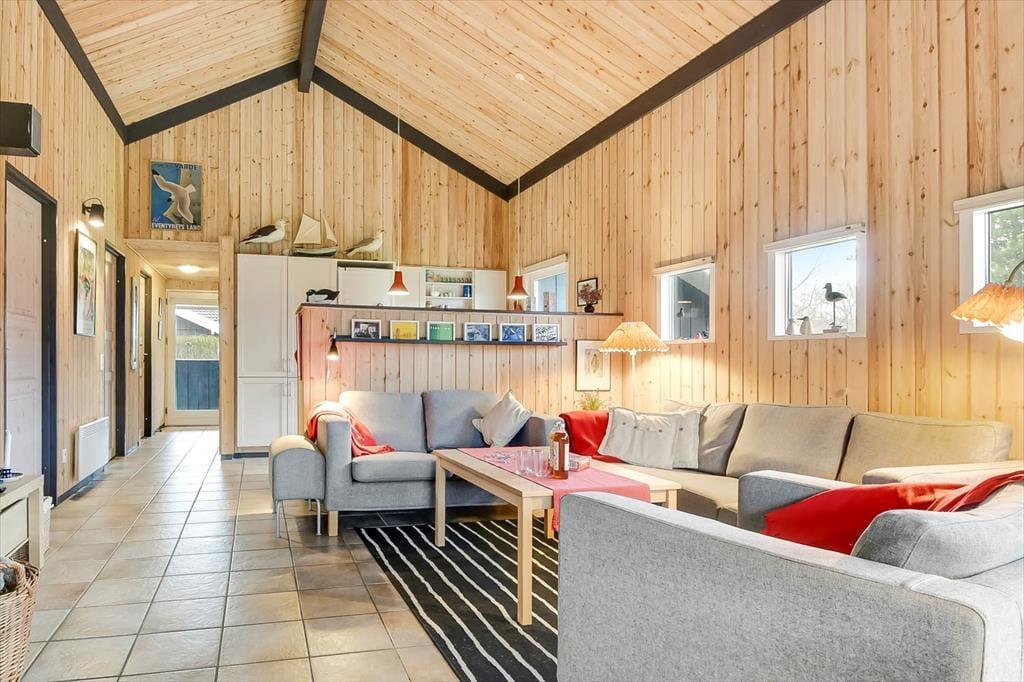 Indenfor emmer sommerhuset af hygge og varme, og her er alt, hvad du behøver for at nyde en afslappende ferie. Stuen fungerer som husets samlingspunkt, hvor I kan sætte jer til rette med et brætspil, en god bog eller en hyggelig film på sofaen. Brændeovnen spreder ekstra varme og stemning i de køligere perioder, mens den åbne forbindelse til køkkenet giver en herlig atmosfære af fællesskab, når der kokkereres. Huset byder på fire dejlige soveværelser, der indbyder til en god nats søvn, og fra det store badeværelse har I nem adgang til alt det nødvendige for en afslappet hverdag.