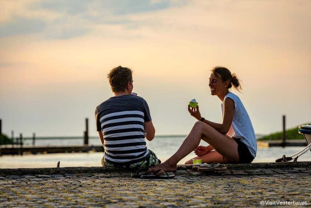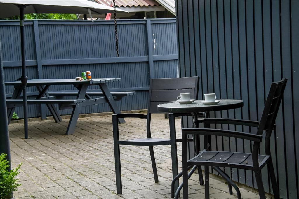 Terrassen udenfor er den oplagte base for afslapning i solens stråler – og herfra kan du følge med i det stille liv i Bork Hytteby, hvor ferieglade gæster går forbi på vej til fjorden eller legepladsen. Huset er placeret på en lille grund, men den er udnyttet med omtanke, så du både kan finde sol og læ, når du har brug for det. Duften af grillmad og lyden af en glad hund, der udforsker området, blander sig med fuglefløjt og den blide brise fra fjorden. Hvis du har børn med, er legepladsen i området et stort plus – og selv som voksen kan du glæde dig over den stemningsfulde atmosfære, som præger hele Hyttebyen. Det er ferie i sin enkleste og mest afslappede form.