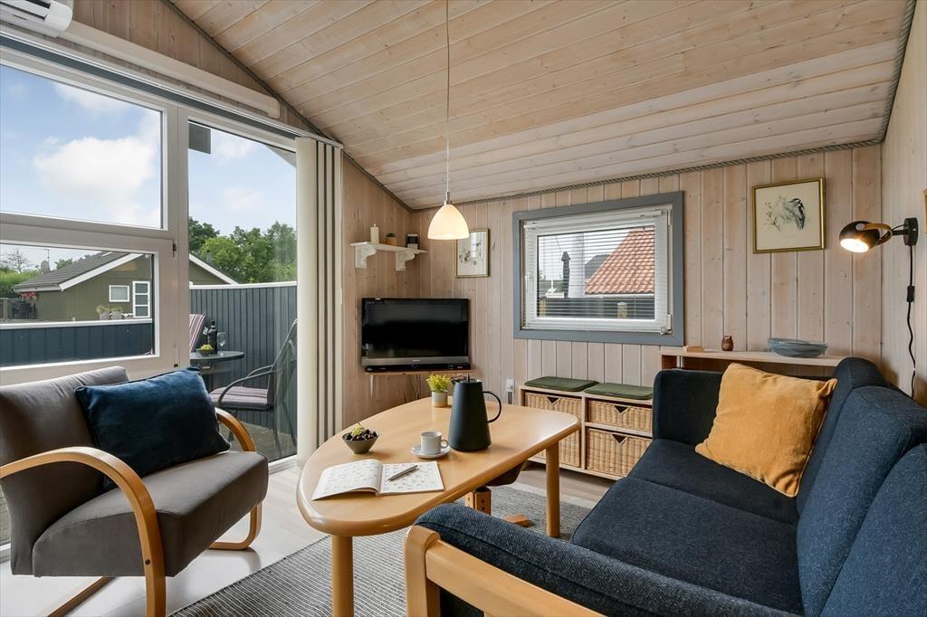 Når du træder indenfor i sommerhuset på Bork Hytteby 39, mødes du af en afslappet og hjemlig atmosfære, hvor der er kræset om detaljerne. De lyse træpaneler og det åbne rumforløb skaber en varm stemning, mens vinduespartierne lader lyset strømme ind og forbinder dig med naturen udenfor. I det åbne opholdsrum kan du og din bedre halvdel slænge jer i sofaen efter en lang gåtur ved fjorden – måske med en god bog og en kop varm kakao inden for rækkevidde. Køkkenet er praktisk og hyggeligt, og det er nemt at fremtrylle morgenmad eller aftensmad i fællesskab. Efter en dag fyldt med indtryk kan I trække jer tilbage til sommerhusets sovepladser og lade roen sænke sig, mens aftenmørket falder på udenfor.