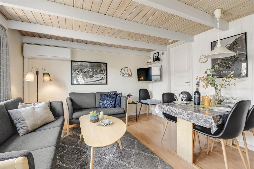 Bork Havn byder på en helt særlig kombination af natur og byliv, og fra Vester Fælled 120 har du nem adgang til det hele. Gå en tur langs havnen, hvor duften af friskfanget fisk og summen fra hyggelige caféer skaber en indbydende stemning. Bork Vikingehavn og Bork Legeland er populære stop for børnefamilier, og du kan nemt komme til den fine surfstrand, hvor både begyndere og erfarne windsurfere nyder fjordens bølger. Byens butikker, spisesteder og minigolfbane ligger lige i nærheden, så du har alle muligheder for at lade ferien udfolde sig præcis, som du ønsker – fyldt med gode oplevelser og masser af afslapning.
