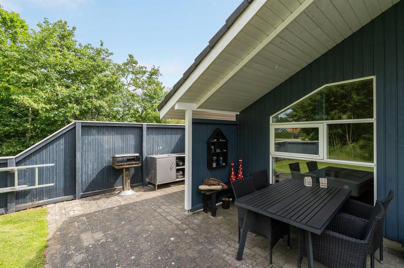Lyst indrettet sommerhus beliggende på en lille naturgrund på en lukket vej. Huset ligger i et område, hvor der er gode muligheder for at nyde naturen til fods eller på cykel. Gode fiske- og surfmuligheder på Ringkøbing Fjord. Besøg også den lille lystbådehavn i Bork, hvor der hygge og atmosfære. Fra huset er der kun få min. gang til fælles legeplads med diverse legeredskaber.