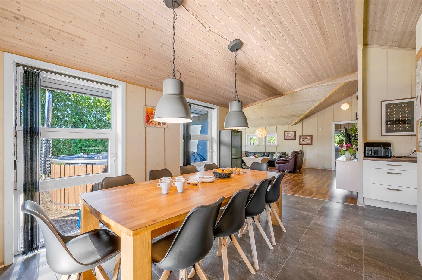 Sommerhuset egner sig til 10 personer samt 1 barn op til 3 år. 2 af sovepladserne er kun egnet til større børn (4-11 år). Ferieboligen er på 117 m² og er bygget i 2008. Det er tilladt at medbringe 2 husdyr. Ferieboligen er udstyret med 1 energivenlig luft til luft varmepumpe. Ferieboligen er udstyret med energibesparende luft til vand varmepumpe. Hele ferieboligen har gulvvarme. Ferieboligen har vaskemaskine. Tørretumbler. Frysekapacitet på 75 liter. Der er desuden brændeovn. Til de små er der 1 stk. barnestol.