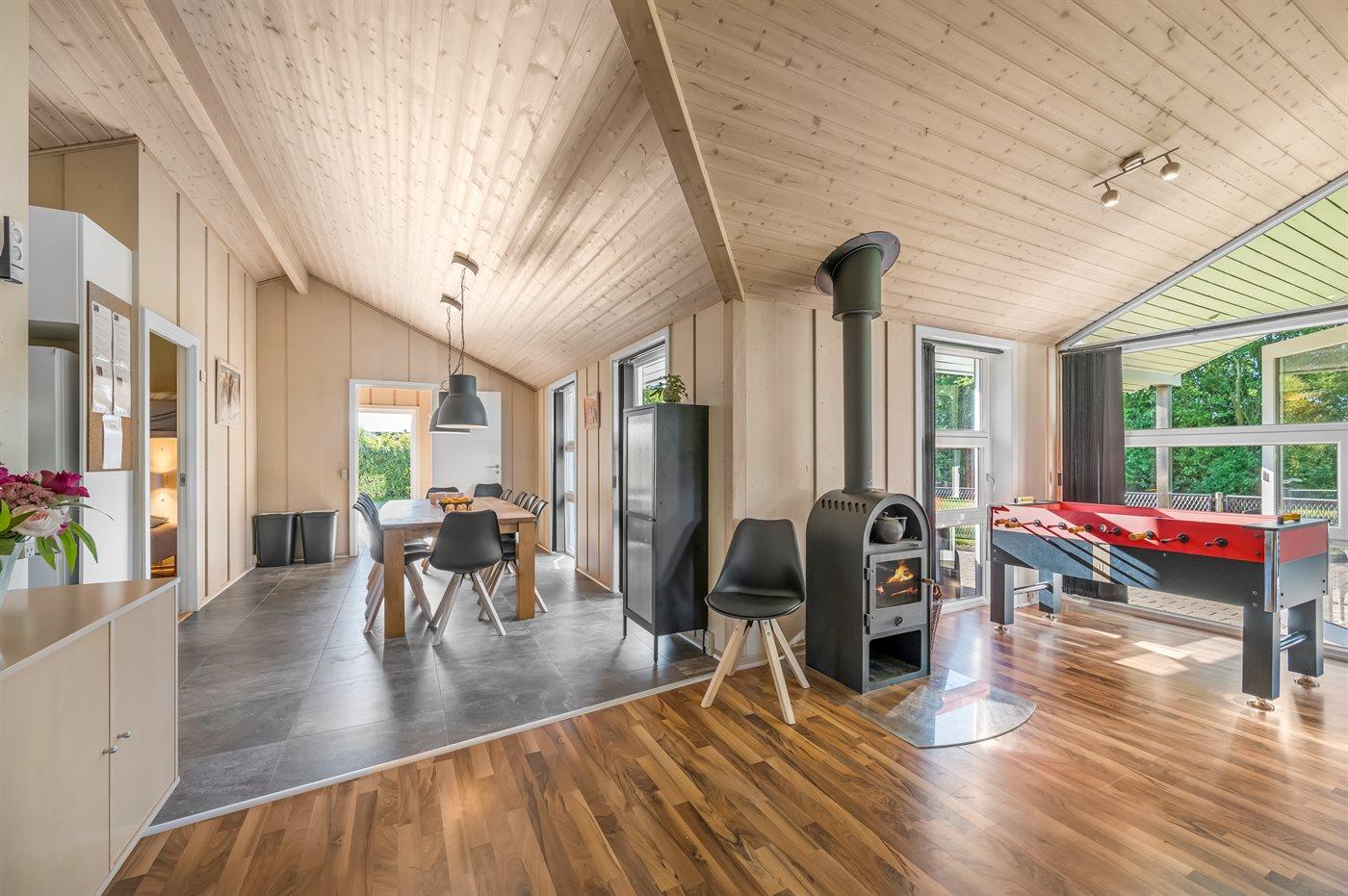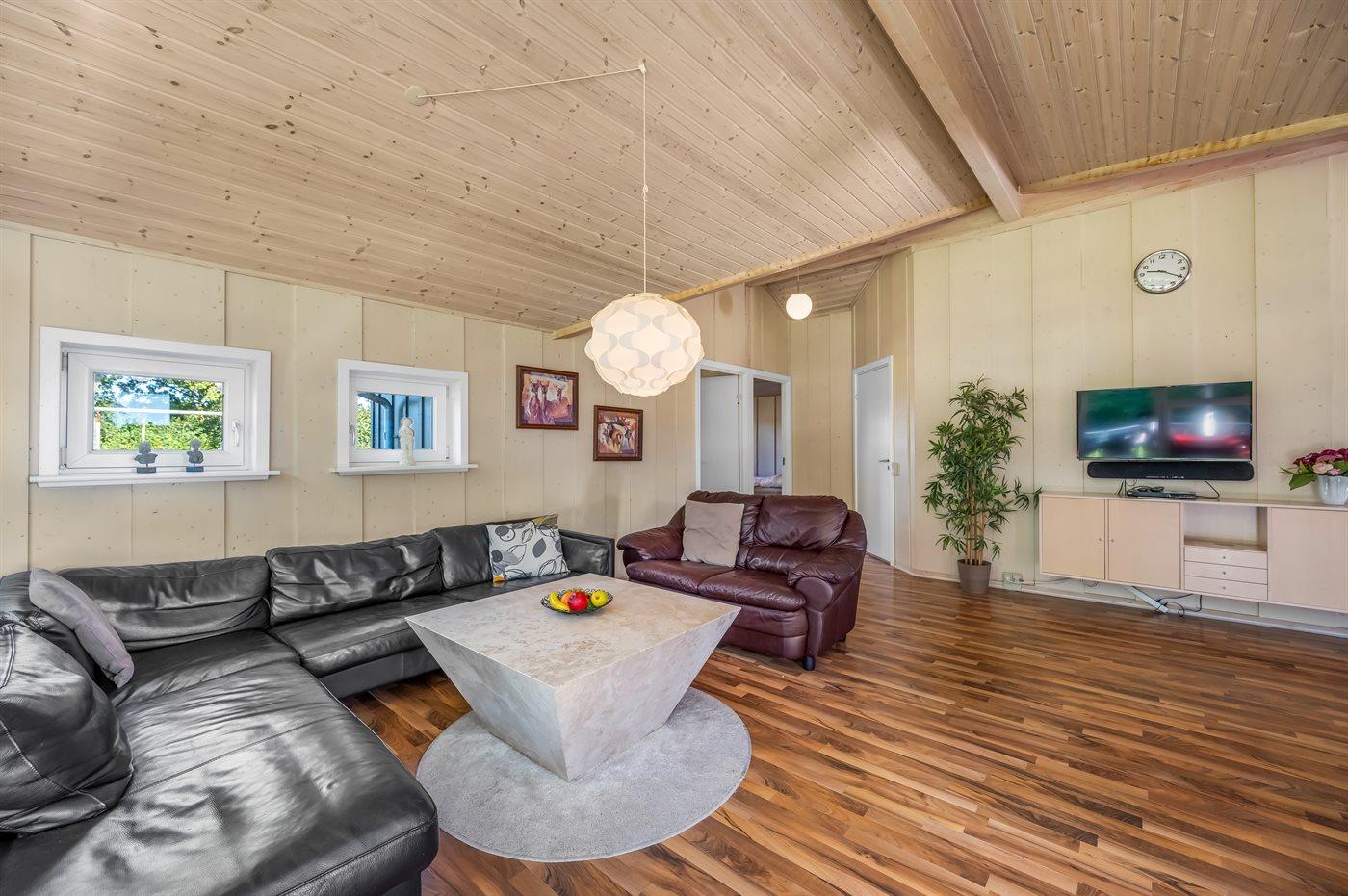 Hyggeligt sommerhus i Hemmet med spa, sauna, aktivitetsrum og stor have til afslapning og leg.