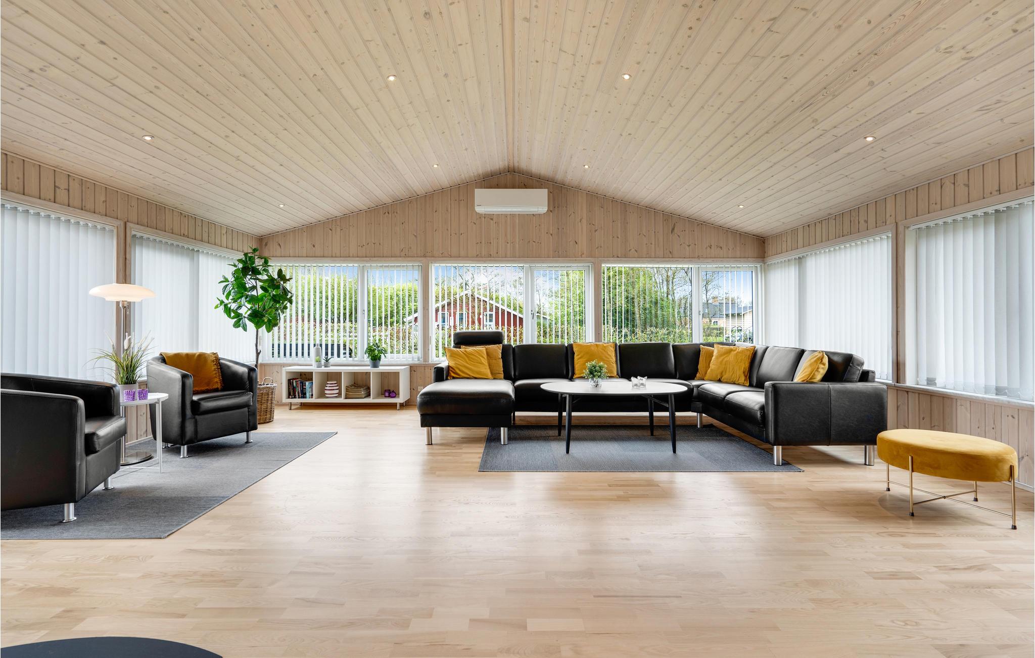 Huset er velindrettet med stort køkken/alrum samt en hyggelig, rummelig stue med et godt lysindfald, som indbyder til både samvær og afslapning. Bortset fra stuen er der gulvvarme i hele huset – og i stuen er der brændeovn og varmepumpe. Huset har fire gode værelser alle med dobbeltsenge, og to badeværelser, hvoraf det ene er med spabad.