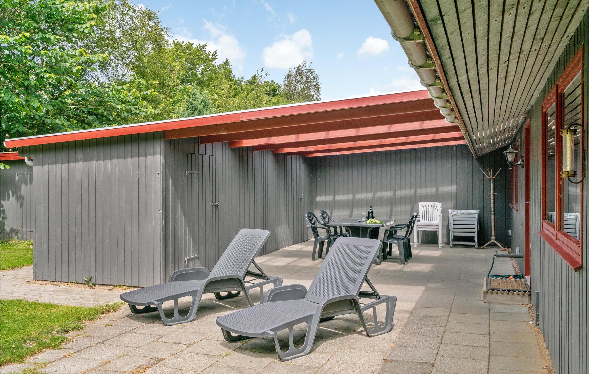 På den store, overdækkede terrasse kan I grille og nyde solen, mens børnene leger i haven - der er hygge med gynge, sandkasse og stor græsplæne.