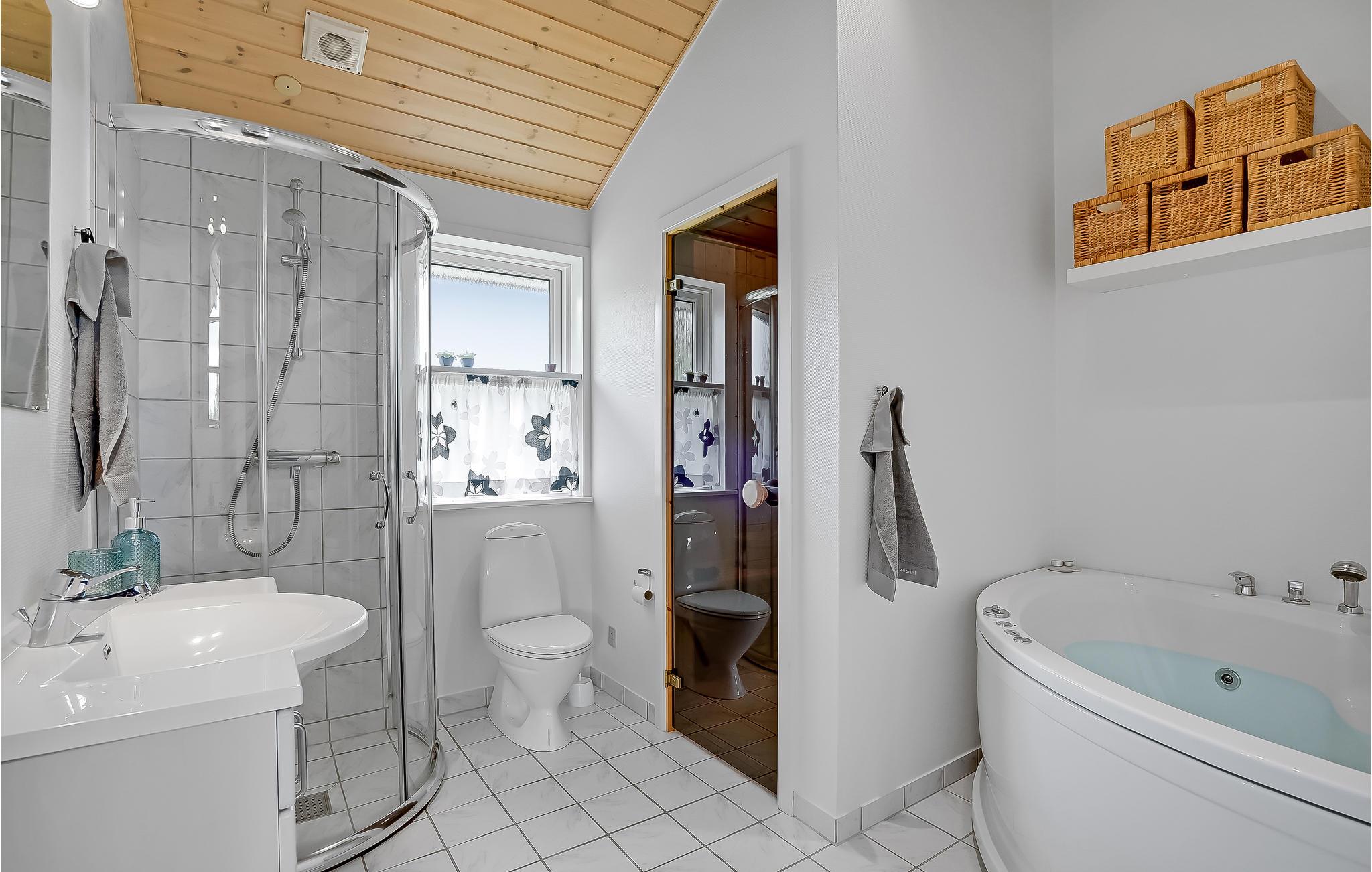 Det indbydende sommerhus ligger i nærheden af ??Bork Havn, hvor der er butikker, caféer og restauranter. Huset har alt I behøver til en dejlig familieferie - et stort køkken, hyggelige opholdsstuer, badeværelse med brusebad og tre fine soveværelser.