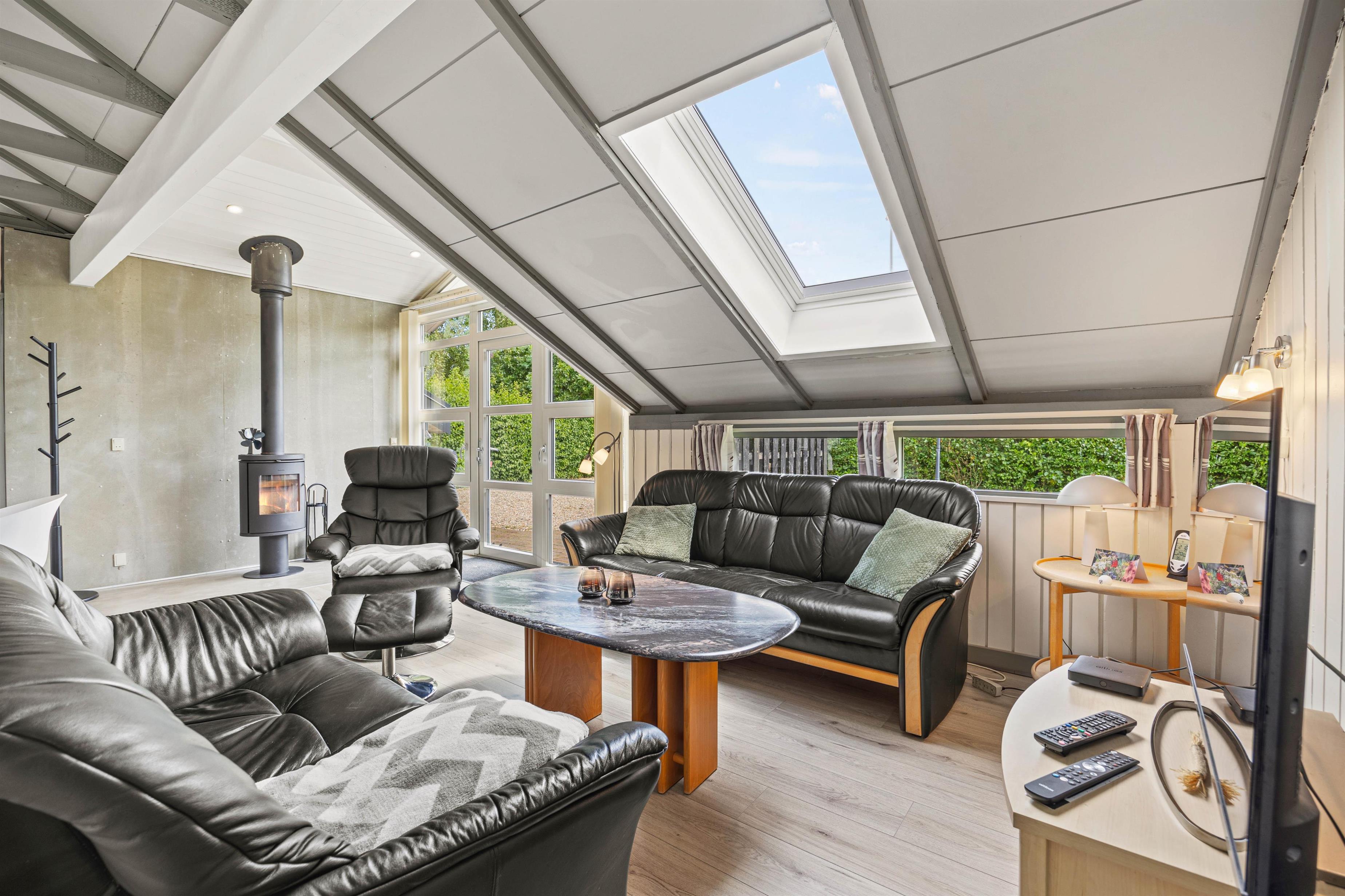 Terrassen er en af sommerhusets absolutte highlights med både åbne, afskærmede og overdækkede områder. Dette giver jer mulighed for at nyde udelivet uanset vejret. Her kan I lade den medfølgende gasgrill tændes og tilberede lækre måltider, mens I slapper af og nyder de fredelige omgivelser. Terrassen er det ideelle sted at tilbringe lange, lyse sommeraftener, hvor I kan synke ned i en behagelig stol og nyde stilheden og naturens skønhed.