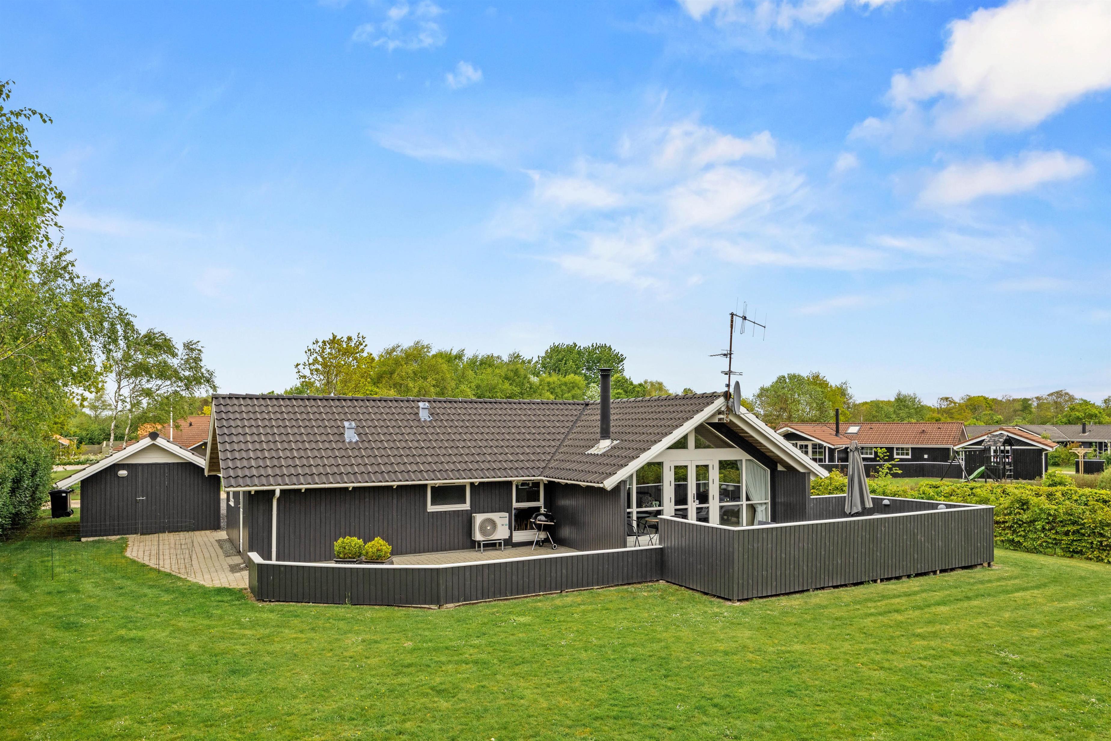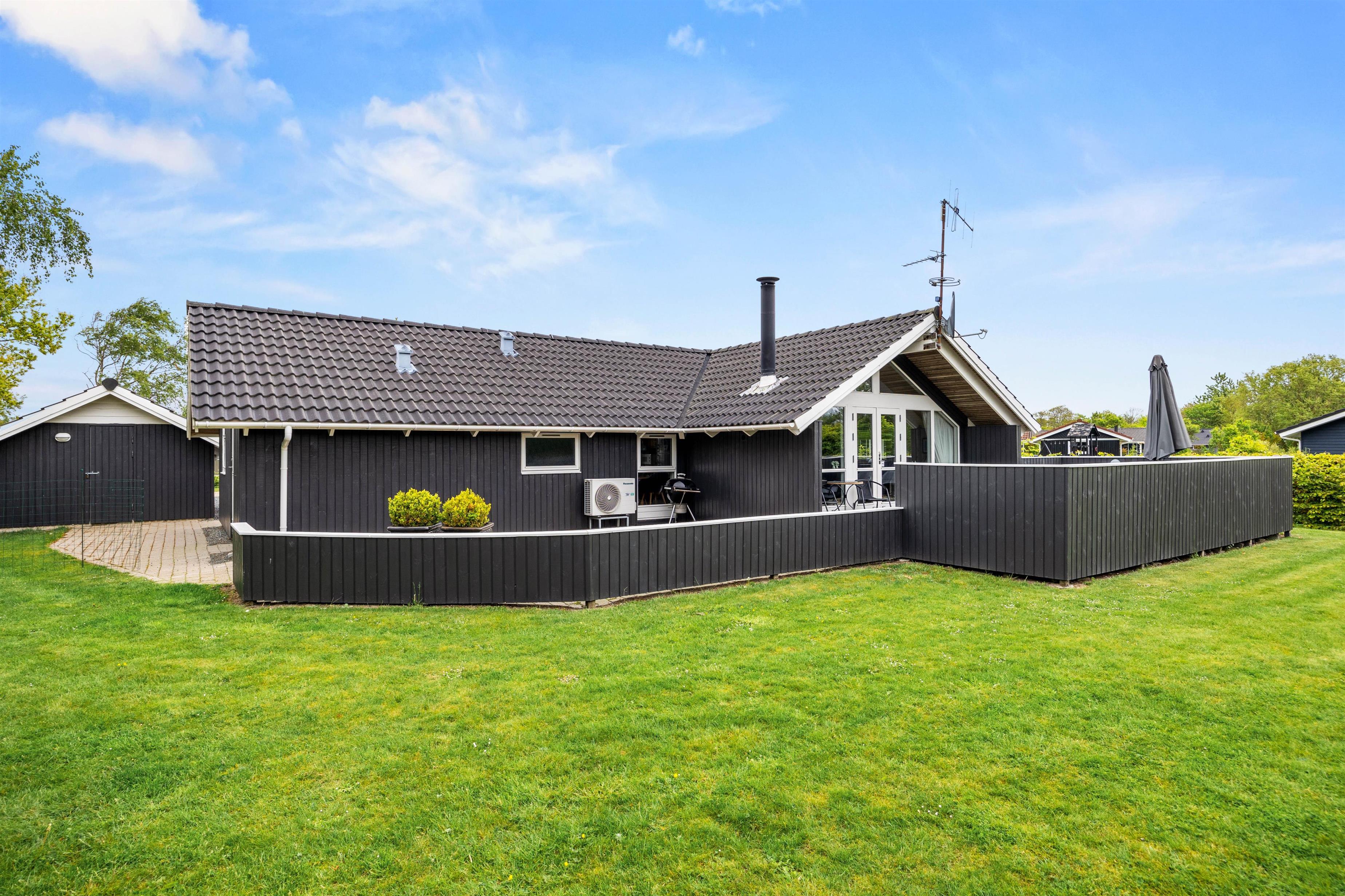Udearealet ved sommerhuset er en sand oase for både afslapning og leg, beliggende på en 1093 kvadratmeter stor grund. Som en praktisk tilføjelse har sommerhuset også et redskabsrum, hvor I kan opbevare cykler, legesager og andet udstyr, hvilket gør det let at holde udearealet ryddeligt og indbydende.