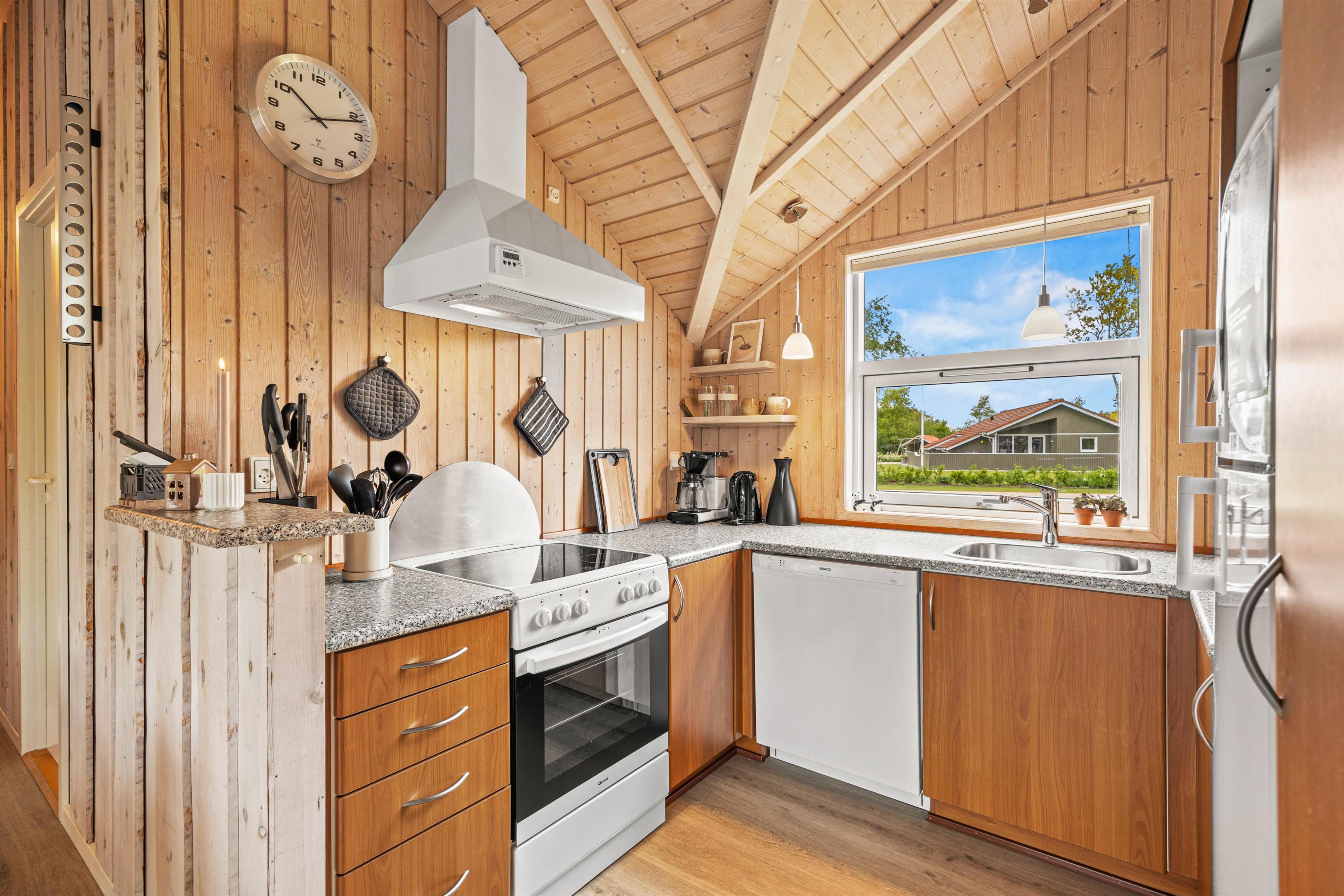 Når du træder ind i sommerhuset, bliver du mødt af et indbydende indeareal, der kombinerer både komfort og funktionalitet i smagfulde omgivelser. Her finder du en vaskemaskine og tørretumbler, der gør det nemt at holde tøjet friskt under hele opholdet. I stuen skaber en charmerende brændeovn en hyggelig atmosfære, hvor I kan samles om aftenen og nyde varmen fra de levende flammer.