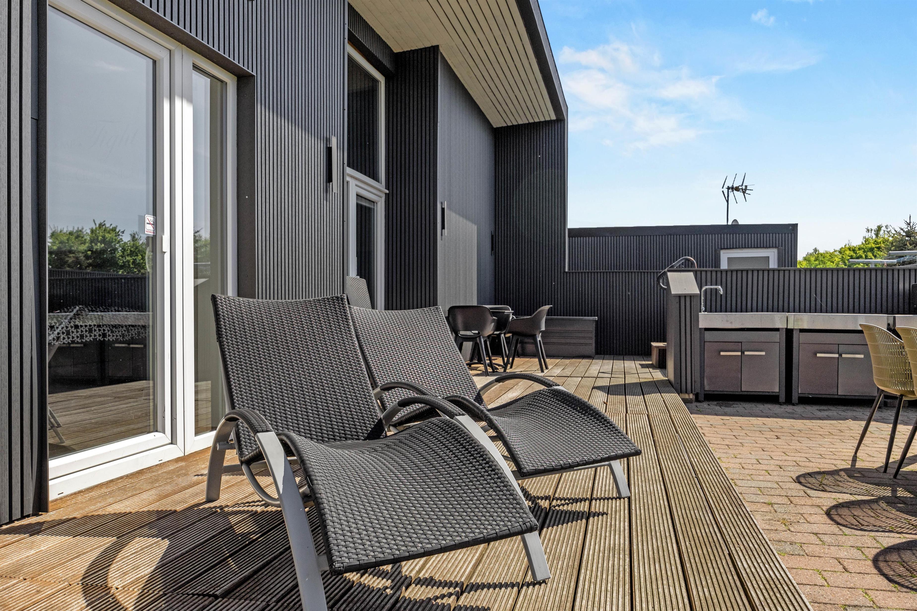 For de voksne tilbyder udespaen plads til 4 personer, hvor I kan slappe af og nyde det varme vand under den åbne himmel. For børnene er haven et sandt paradis med en sandkasse, gynge og trampolin, der sikrer timevis af sjov og leg. Hvis I ankommer i el-bil, finder I et ladestik, der gør det nemt at holde bilen kørende under ferien. Alt i alt indbyder udemiljøet til både rolige stunder og hyggelige familieaktiviteter.
