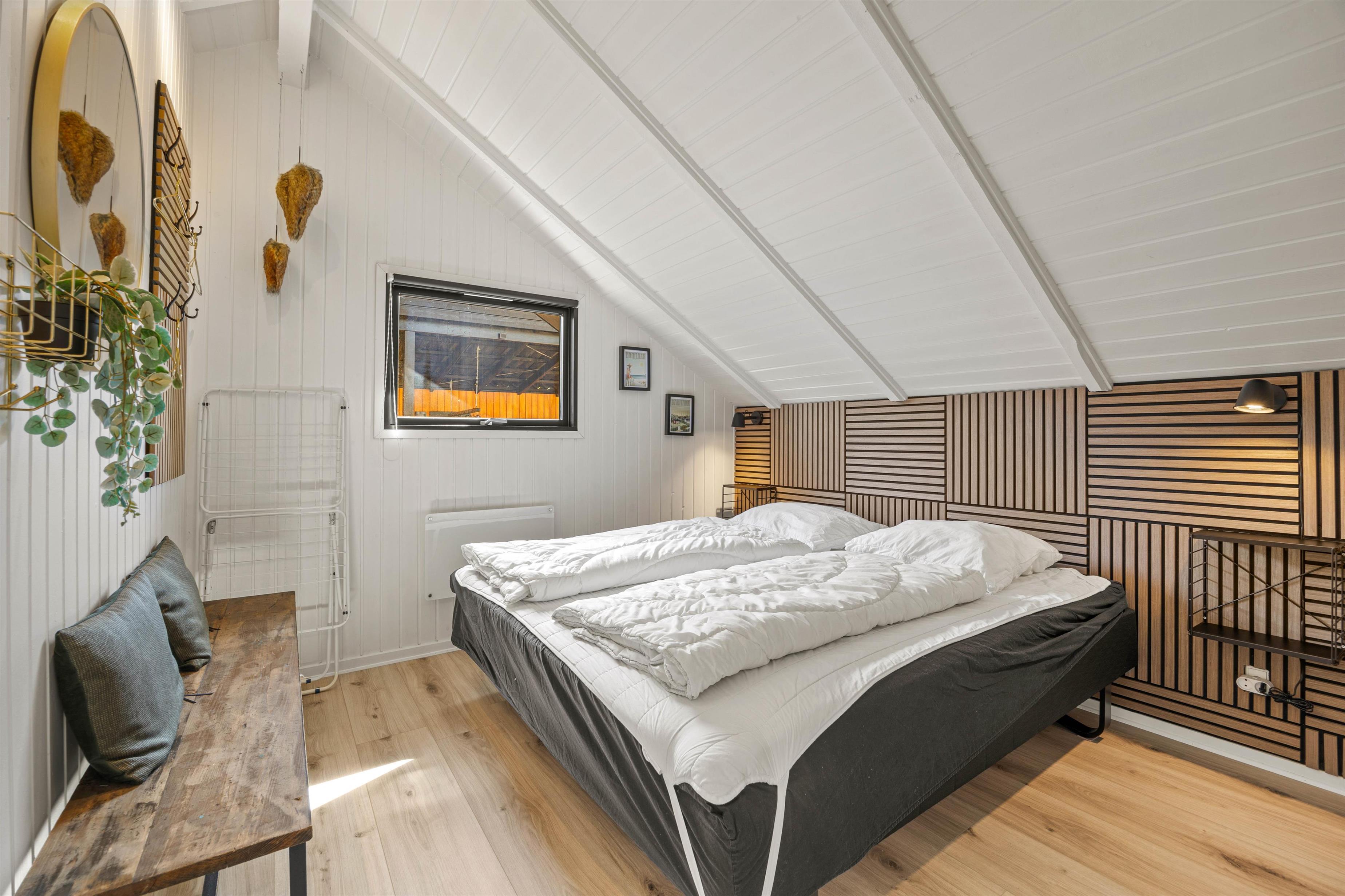 Allerede når I ankommer til sommerhuset på Horsfold 17 i Bork, vil I føle jer hjemme. I sommerhuset bliver I budt velkommen af en lys og hyggelig indretning med loft til kip og et skønt lysindfald, der tilsammen skaber en helt fantastisk ferieatmosfære.
