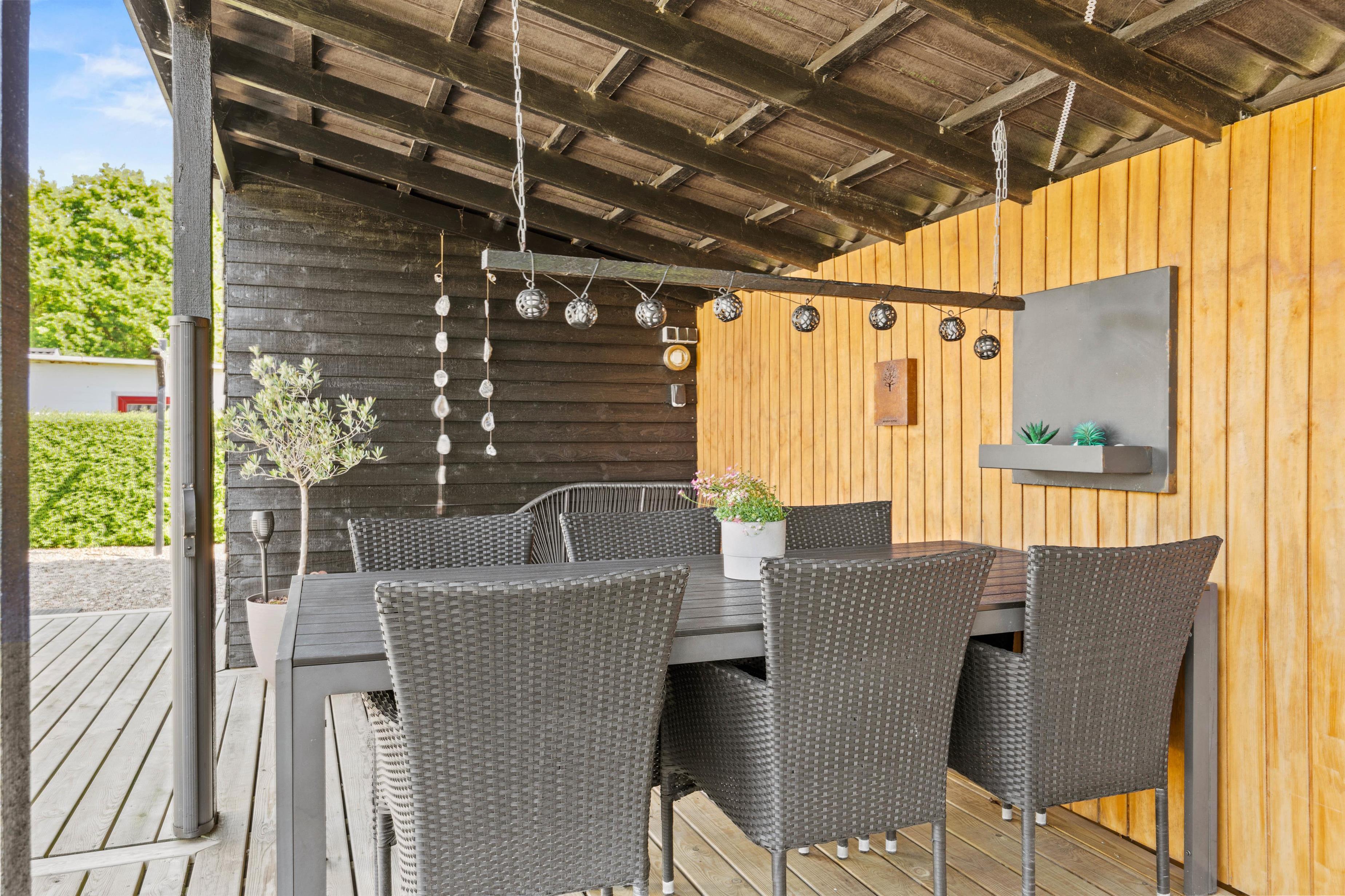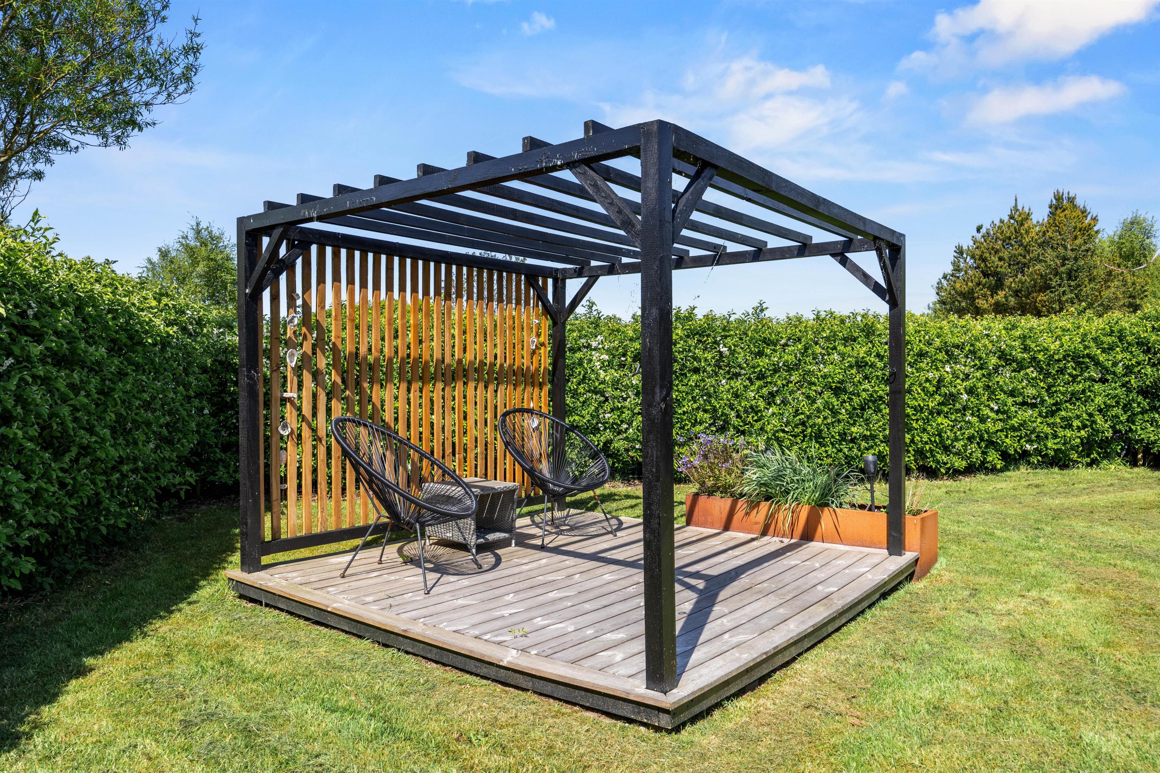 Udendørs venter jer et dejligt udeområde, hvor I både har en have og flere skønne terrasser, I kan tilbringe de solrige dage af jeres ferie på. På terrasserne har I havemøbler og liggestole, som I kan finde jer til rette i på en god plads i solen. I har desuden en grill til rådighed, og på de lune ferieaftener kan I tænde op i grillen på terrassen og stege nogle lækre bøffer, som I kan nyde med et glas vin til. Her kan I samtidig nyde den rolige atmosfære og lytte til naturens lyde, mens solen går ned over horisonten.