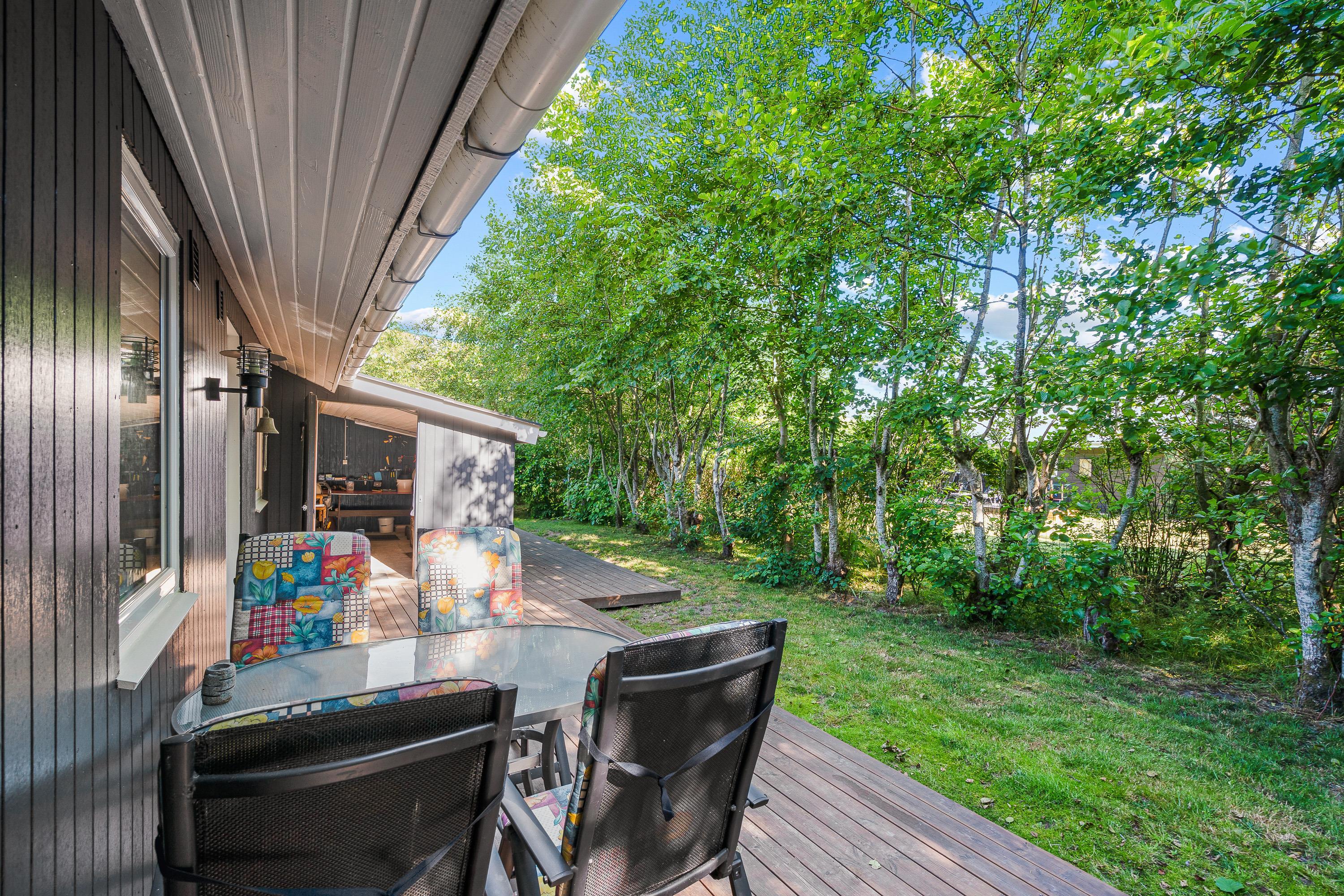 Den rummelige terrasse giver jer mulighed for at opbevare strandudstyret eller lege med børnene i skyggen. Der er rig mulighed for at nyde måltider under åben himmel, og den medfølgende grill gør det nemt at tilberede lækre retter. Slut en hyggelig feriedag af med en lækker middag på grillen, som I kan nyde på terrassen.