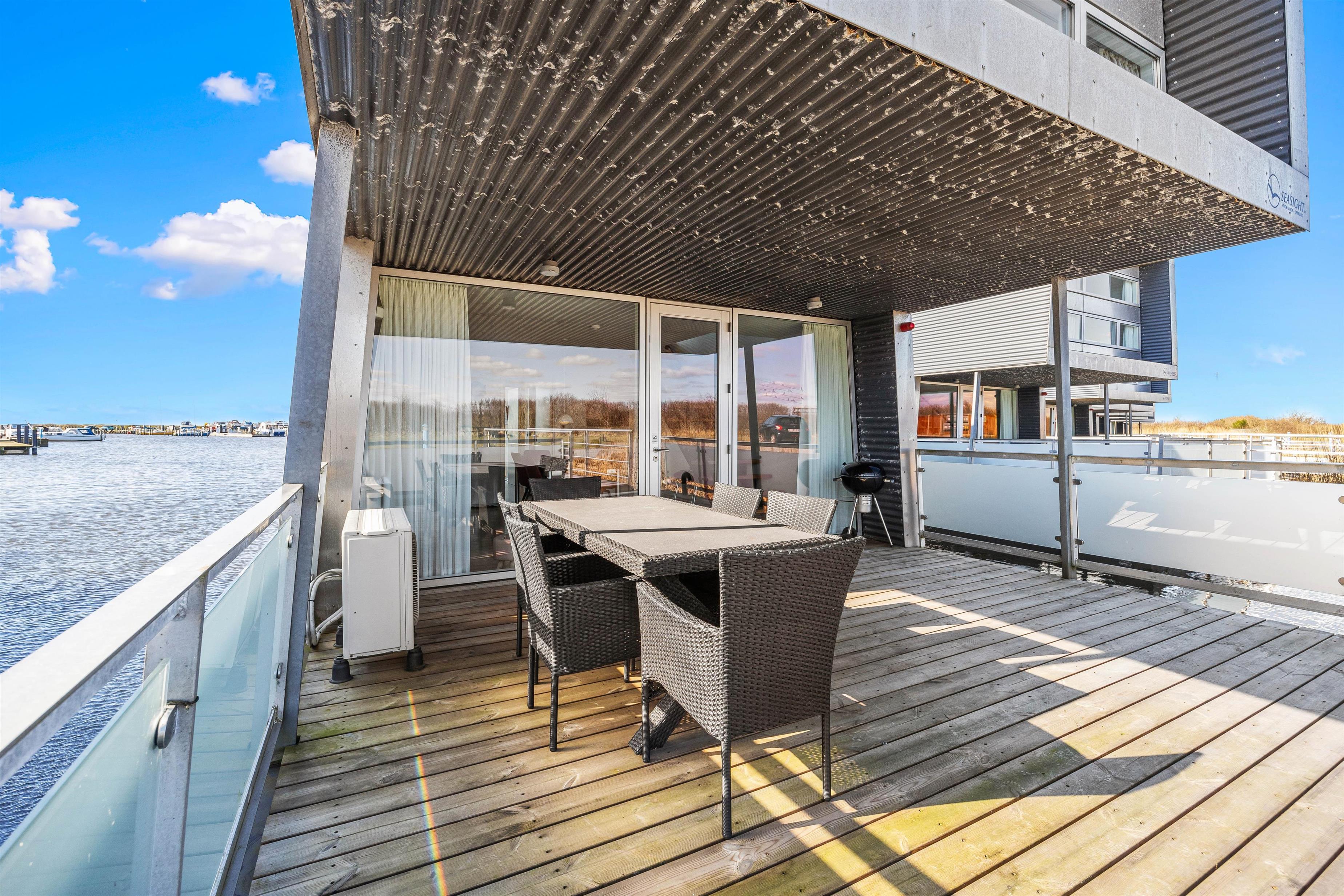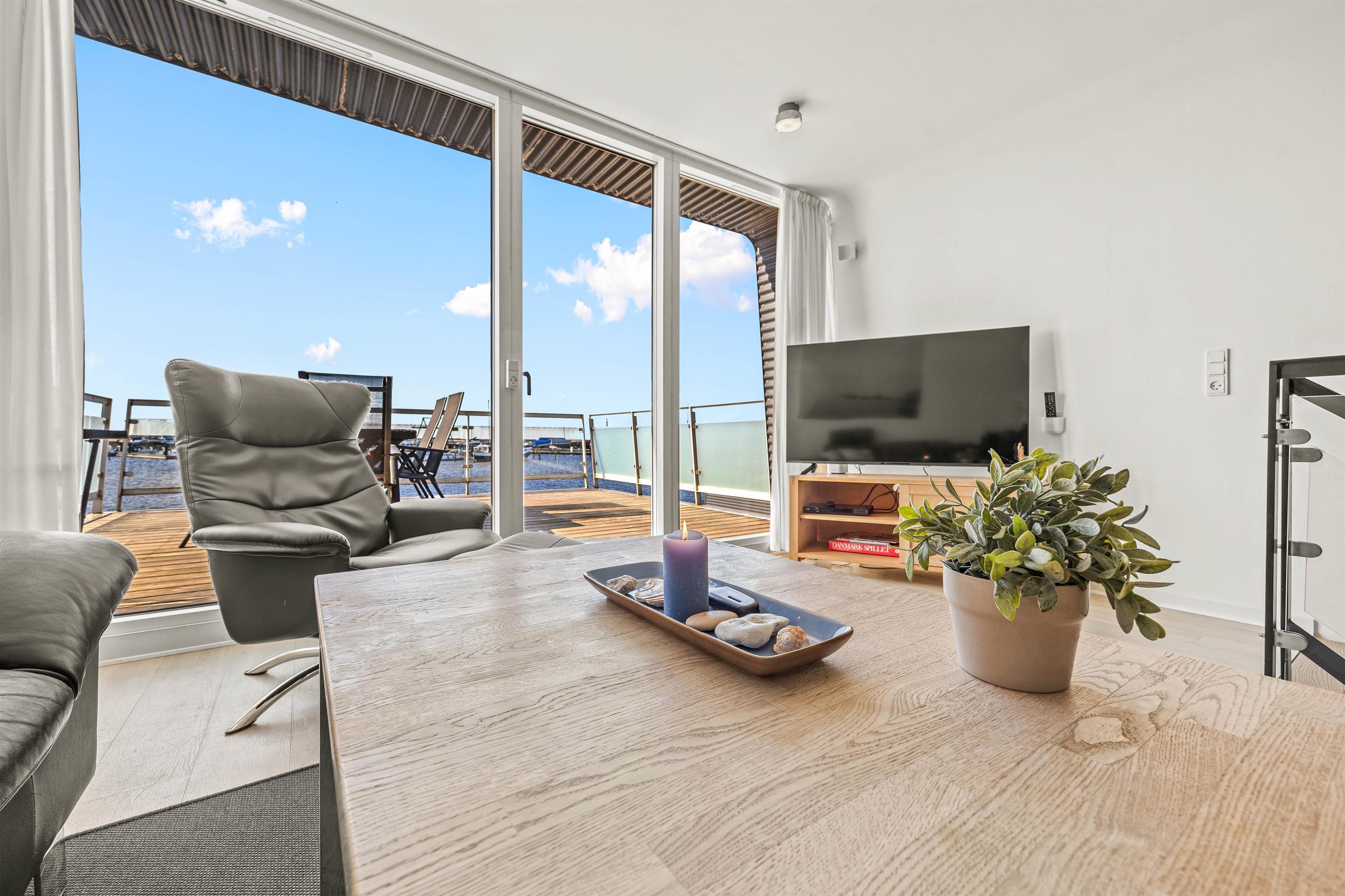 Når I opholder jer på husbåden, er terrassen et sted, I vil elske at tilbringe tid. Her har I en fantastisk udsigt over fjorden, der kan nydes fra morgen til aften. Start dagen med en dejlig brunch i det fri, hvor morgenens stille bølger og friske luft sætter en afslappende stemning.