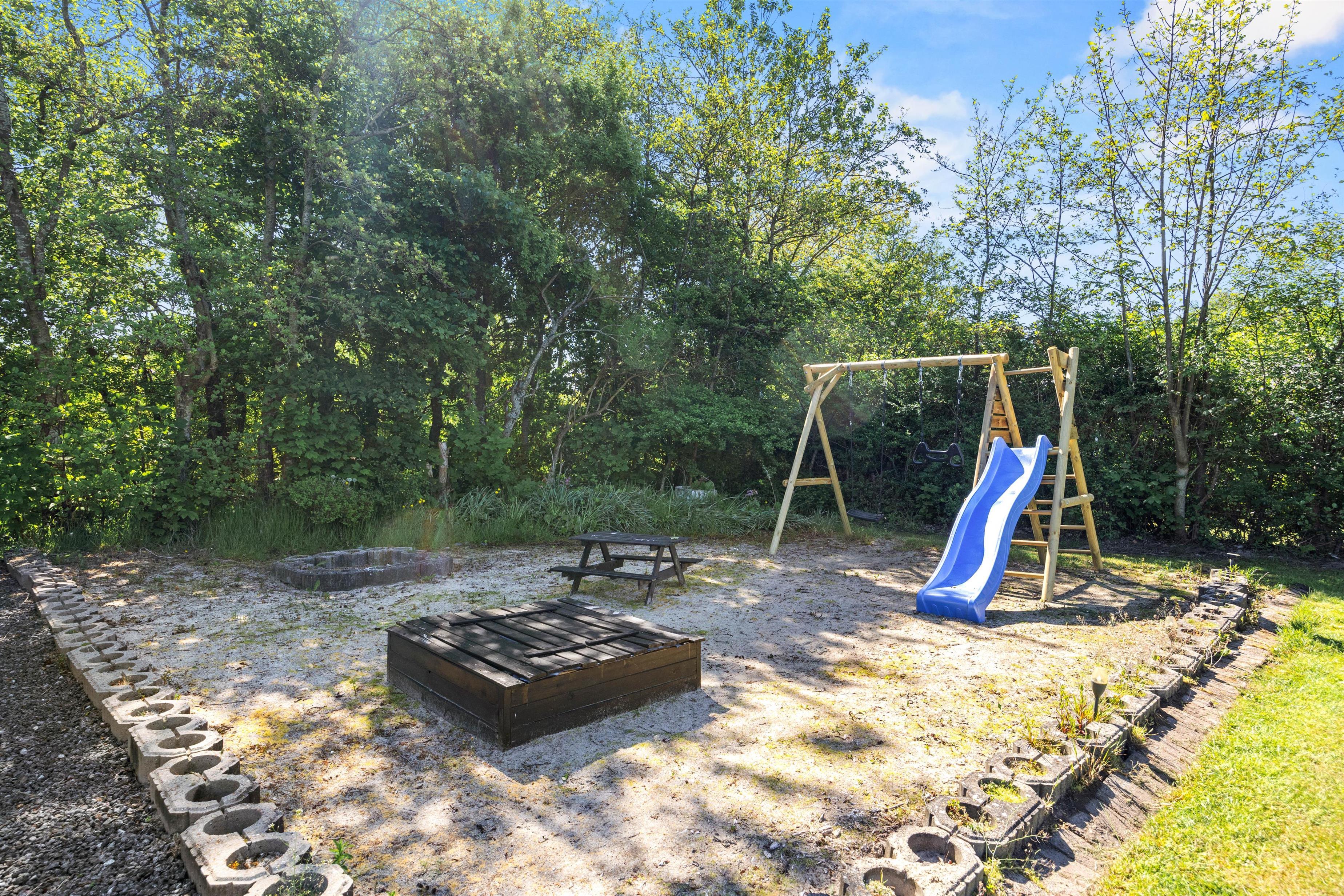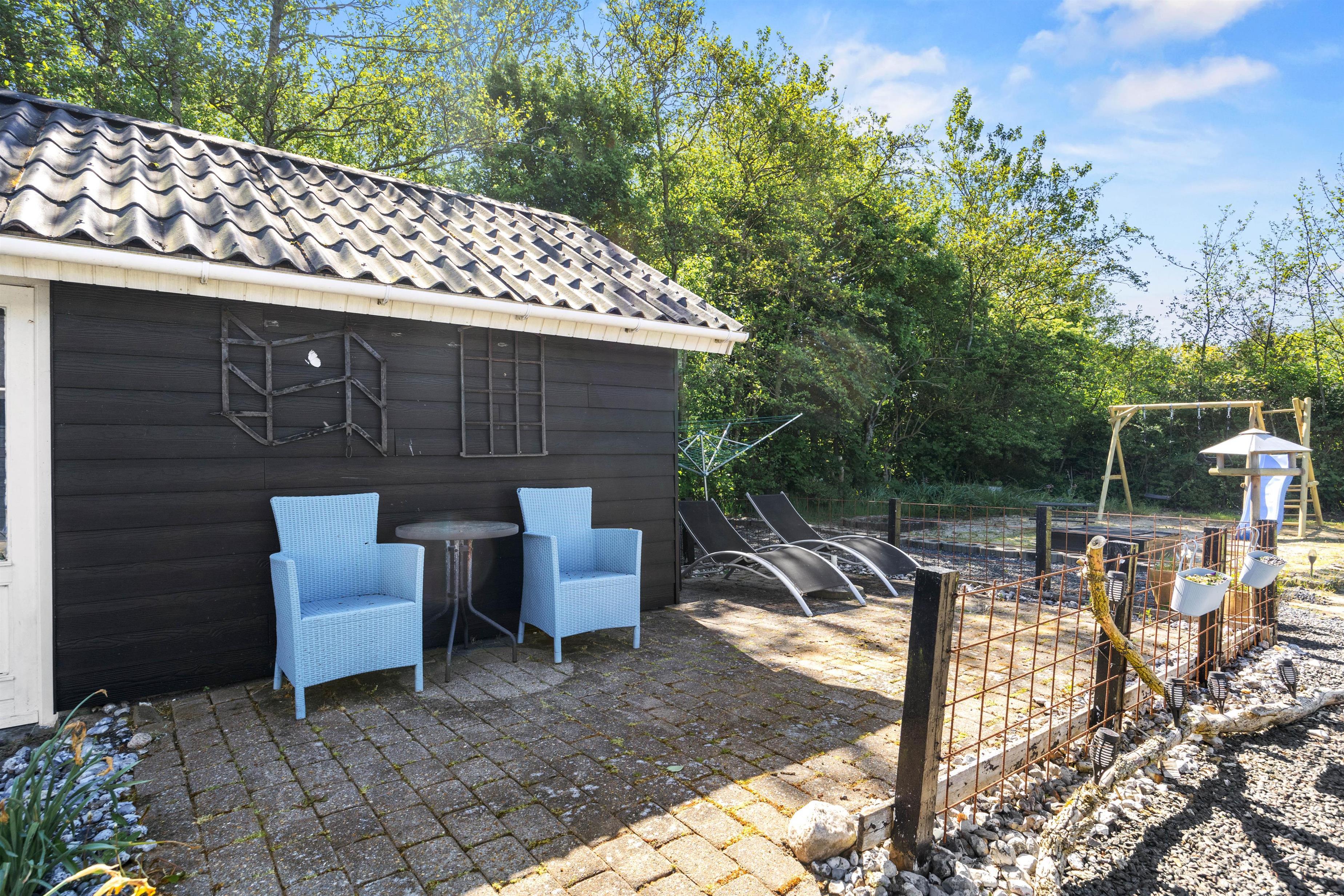 På de solrige dage kan I slappe helt af i solvognene, mens en parasol giver jer mulighed for at søge skygge, når solen står højt. Den rummelige plænegrund indbyder til masser af udendørs aktiviteter, såsom kongespil eller picnic, hvor alle kan være med. For børnene venter der eventyr på gyngen, der står klar i haven, hvor de kan lade fantasien få frit løb og nyde mange timers leg´og sjov.