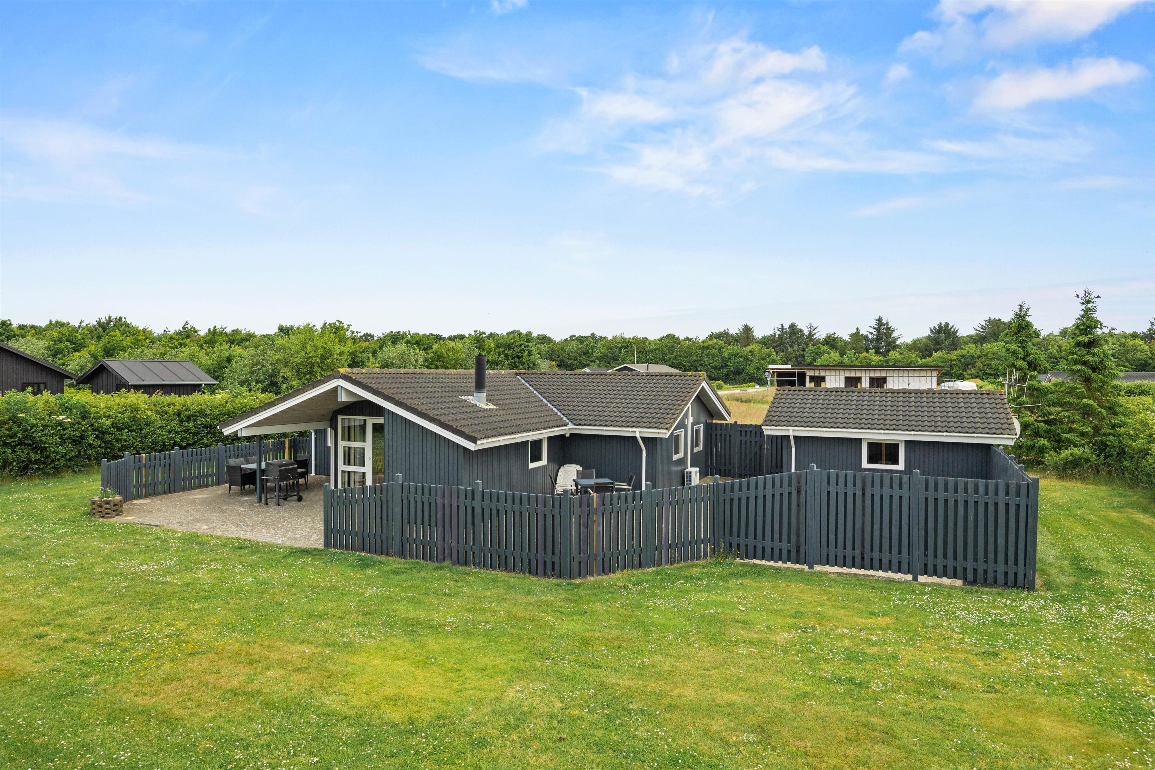 Sommerhusets udemiljø er designet til at tilbyde både afslapning og aktivitet på den skønne plænegrund på 1213 m2. Her kan I udfolde jer på den brede, åbne plæne, der indbyder til leg og spil for både børn og voksne.