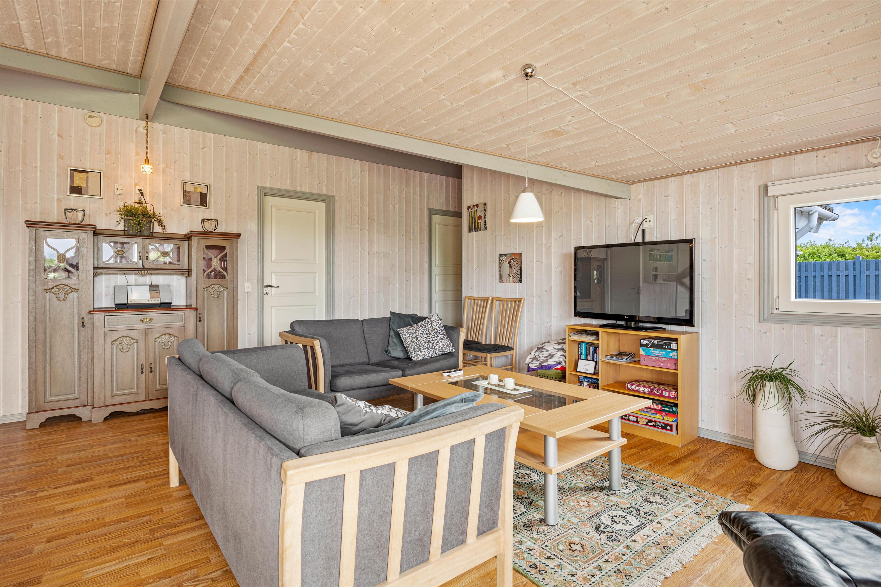 Ligegyldigt vejret er der god mulighed for udendørsopholdelse på sommerhusets alsidige terrasse, da I både finder en delvist overdækket og afskærmet terrasse, hvilke er oplagte steder at nyde et skønt måltid over grillen, mens dagens oplevelser synker ind. Terrassen er altså idéel til både afslapning under solen eller hyggelige grillaftener, hvor du kan nyde dejlige middage med familie og venner.