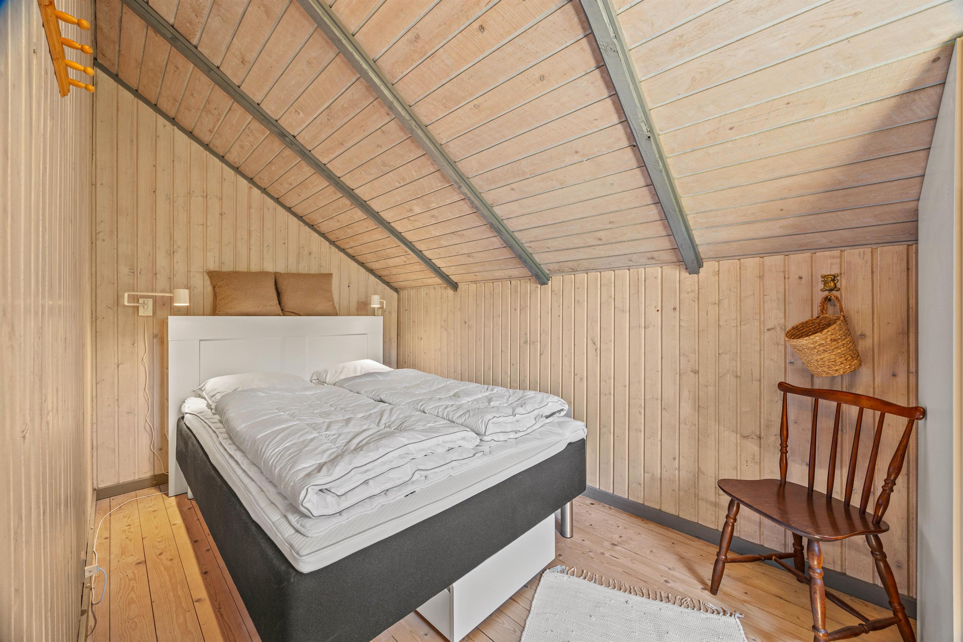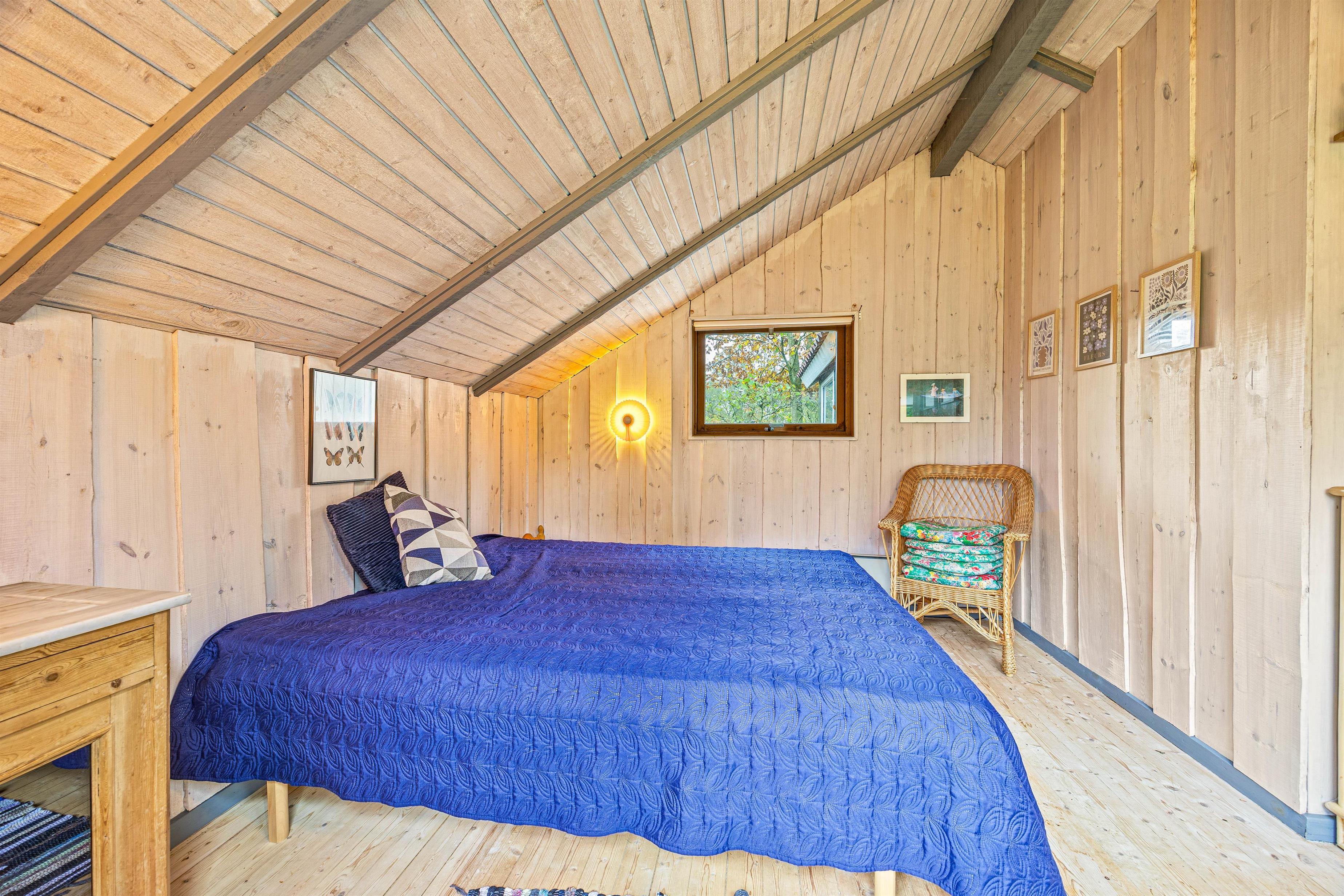 Indenfor byder stuen på en charmerende brændeovn, der fylder rummet med en behagelig varme og skaber den klassiske sommerhusstemning, som mange længes efter på ferien. Her kan I samle jer omkring flammerne, mens I nyder en varm kop kakao og lader dagens oplevelser bundfælde sig. Med Chromecast til rådighed i stuen, har I muligheden for at streame jeres yndlingsfilm og serier.
