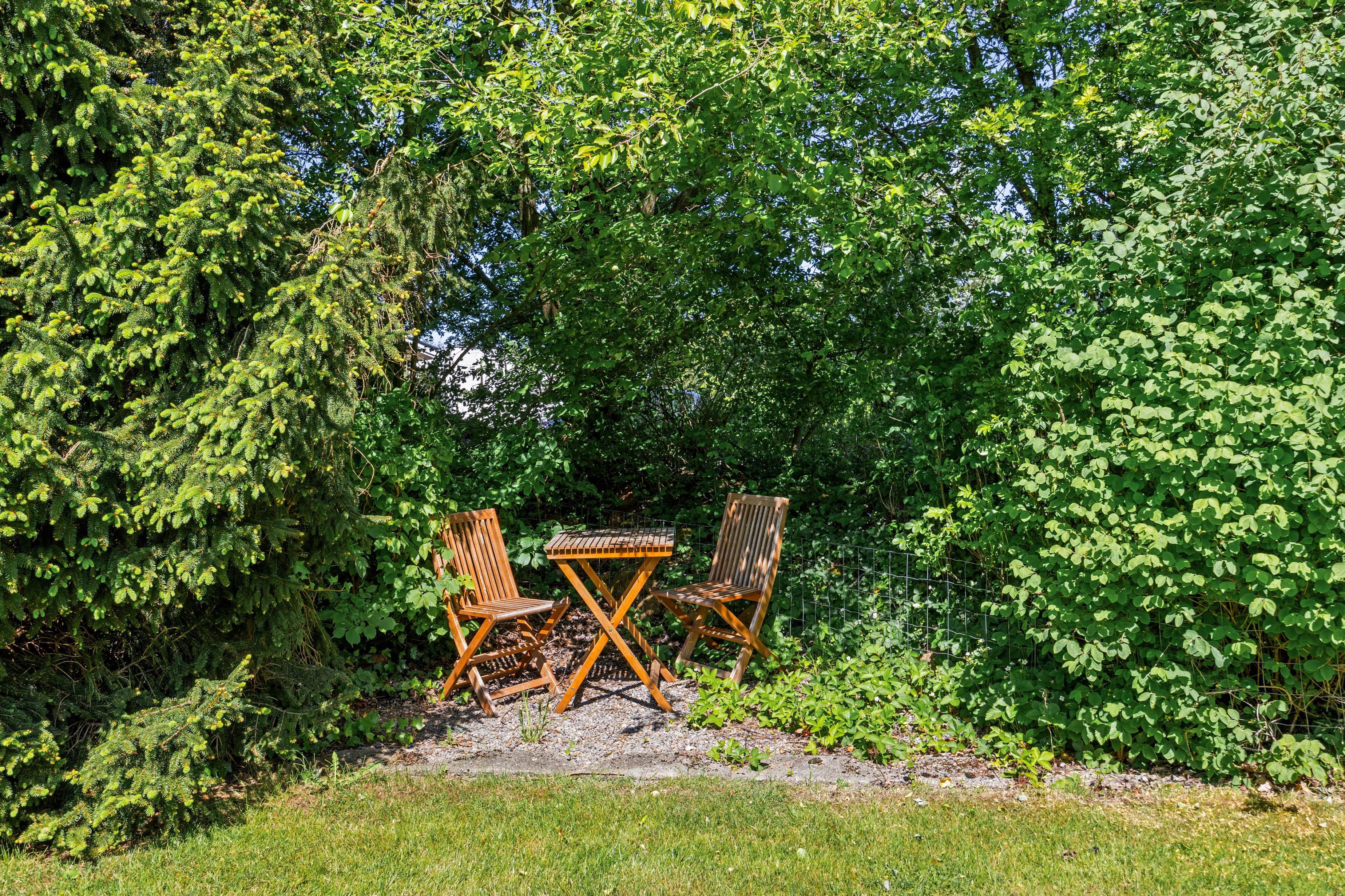 Fra terrassen kan I træde ud på den store 944m2 plænegrund, hvor der er masser af plads til både spil og leg. Det giver små og store mulighed for at boltre sig frit, og jeres firbenede ven kan også nyde terrænets frihed. Hvis I har lyst, kunne der arrangeres en turnering i kongespil eller andre havespil - her er der plads nok til at skabe en dag fyldt med smil og latter.