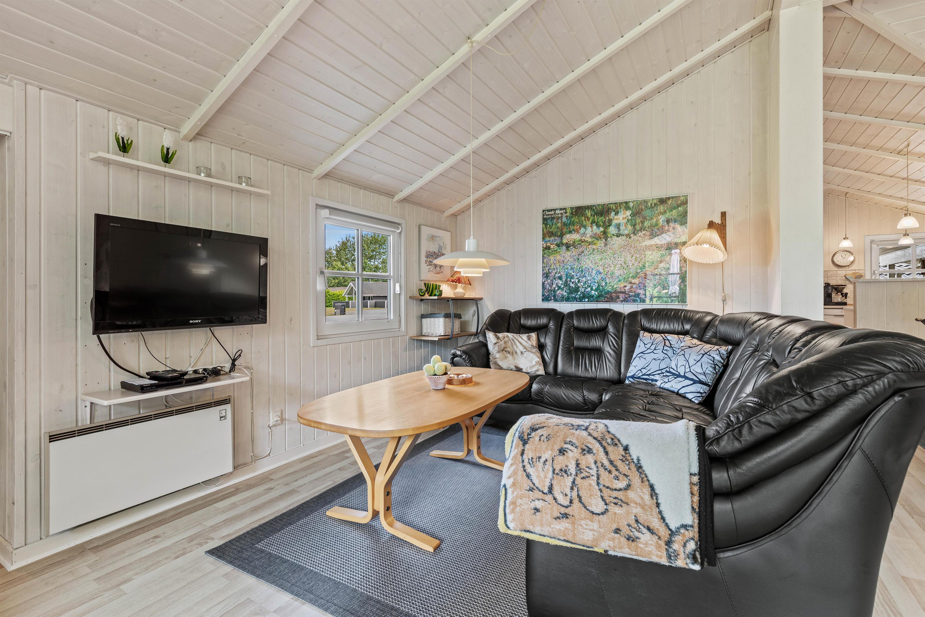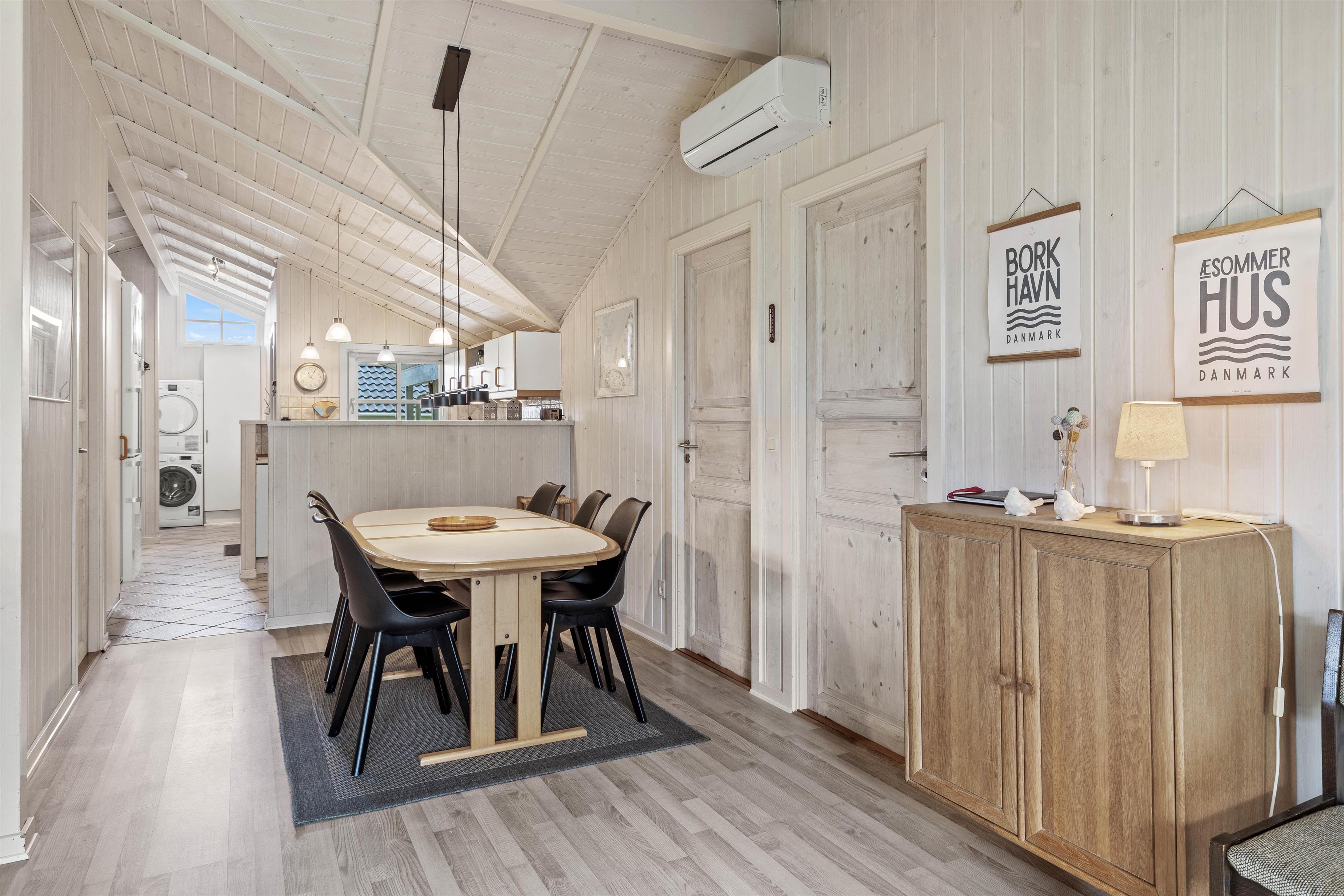 Sommerhuset er lyst og åbent indrettet med en god planløsning, der skaber en rummelig og indbydende atmosfære. Køkkenet er udstyret med en opvaskemaskine, så I nemt kan klare opvasken og få mere tid til at nyde ferien og eventuelle aktiviteter.