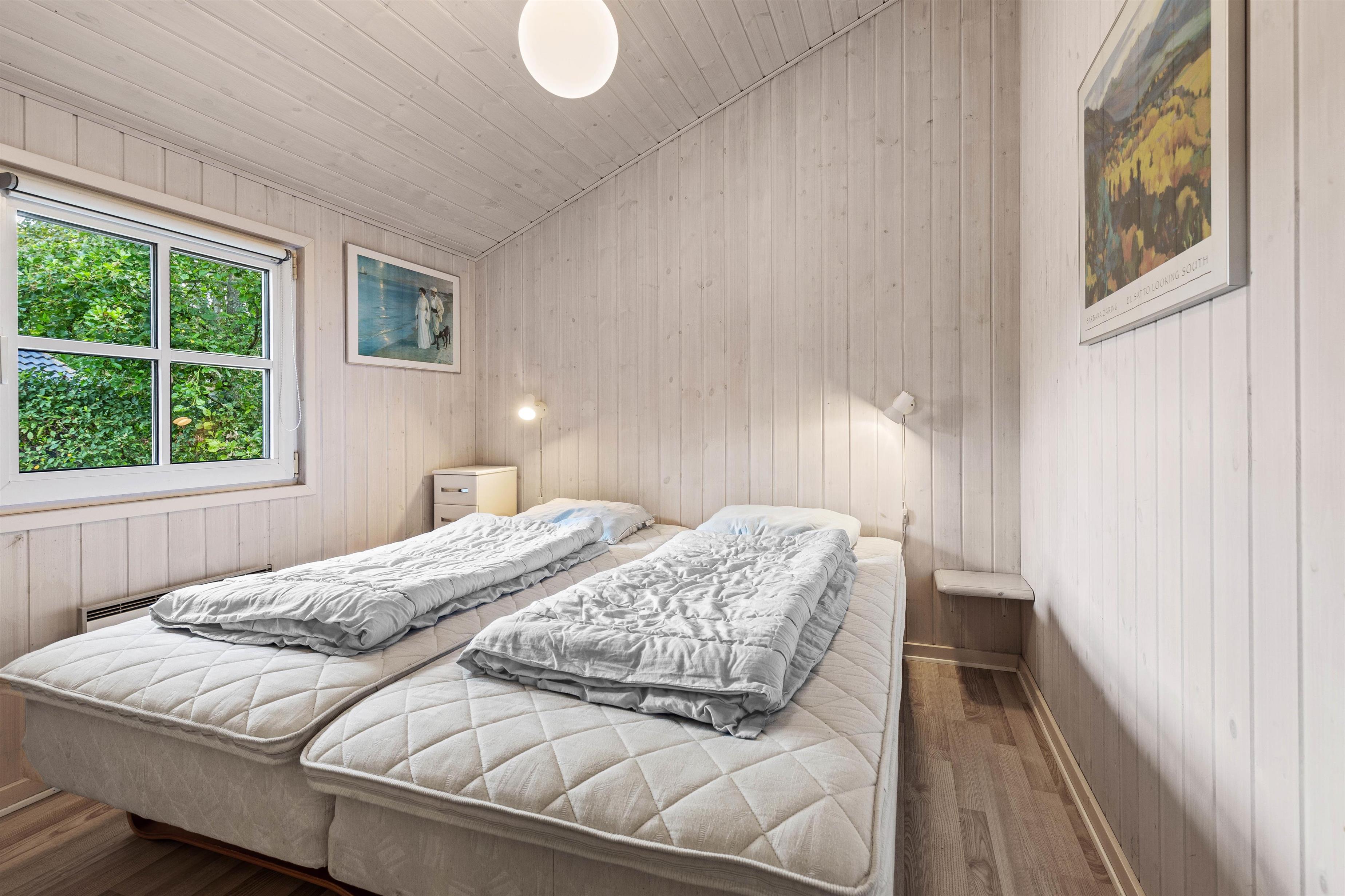Sommerhuset tilbyder tre lyse soveværelser; 2 med dobbeltsenge og et med 2 enkeltsenge, hvilket giver masser af plads til hele familien. Huset har også 2 badeværelser med gulvvarme, hvilket sikrer ekstra komfort hele året rundt. I entreen er der både vaskemaskine og tørretumbler, så I nemt kan holde styr på tøjet under ferien.