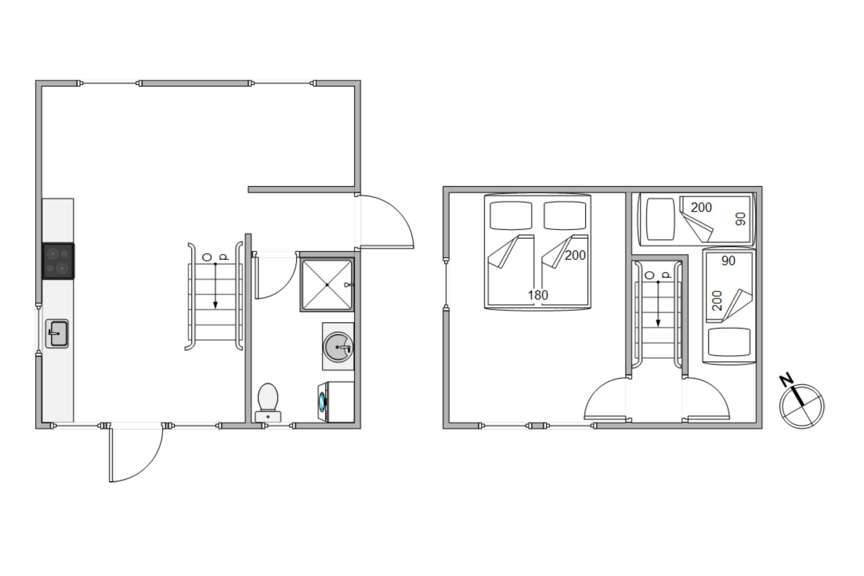 Sommerhuset har 2 hyggelige soveværelser på første sal. Det ene rummer en dobbeltseng, mens det andet er ideelt til børnene med 2 enkeltsenge. Dette giver plads til hele familien og sikrer en god nats søvn efter en dag fuld af aktiviteter.