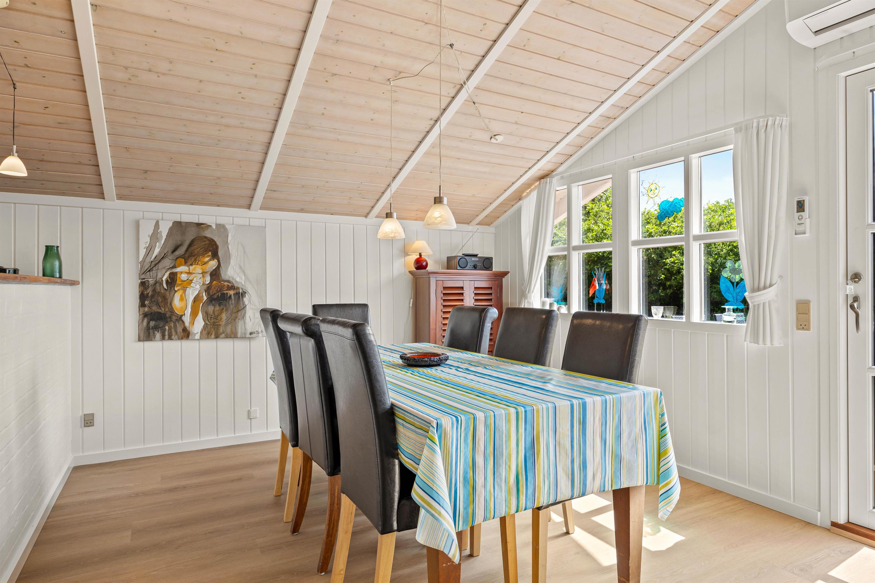Feriehusets hjerte er det åbne opholdsrum, der rummer stue og køkken. Her er en indbydende atmosfære og god plads til familielivet. Her kan I sammen skabe nogle skønne ferieminder med fællesmiddage eller brætspilsaftner. Samtidig er det også her, at I kan koble fra og nyde ferien med en kop kaffe, en god bog eller en film. For at gøre det ekstra hyggeligt, kan I tænde op i pejsen, der også giver god varme. Praktisk er her en energibesparende varmepumpe, der bidrager til et behageligt indeklima hele året rundt.
