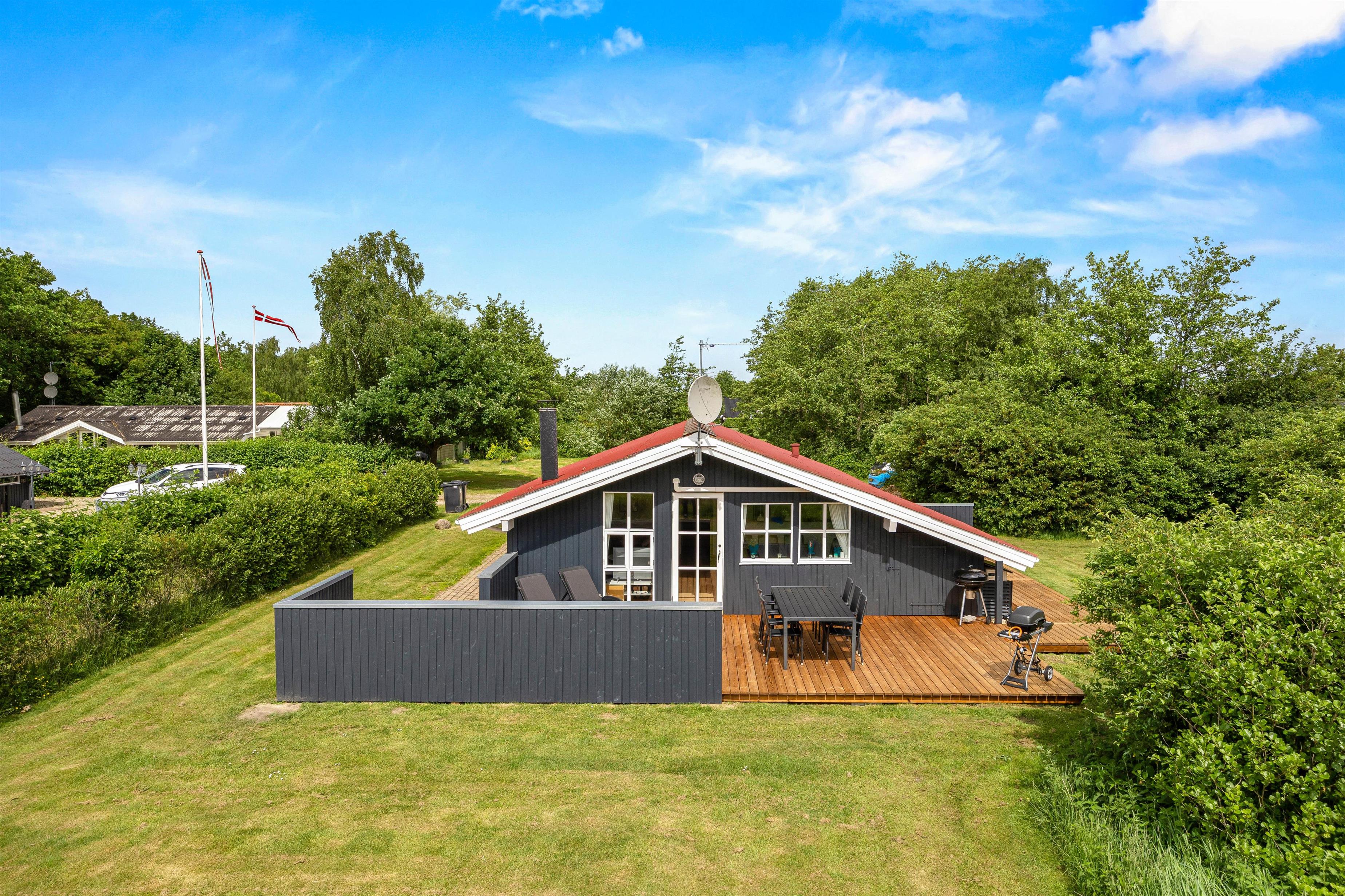 Feriehuset er beliggende i et roligt og børnevenligt område – og her har I god mulighed for at nyde den danske sommer. Her er en dejlig træterrasse, hvor havemøblerne venter, og en grøn græsplæne perfekt til sjov og leg! Her kan børnene sagtens lege, og til familiens mindste er her også et gyngestativ.