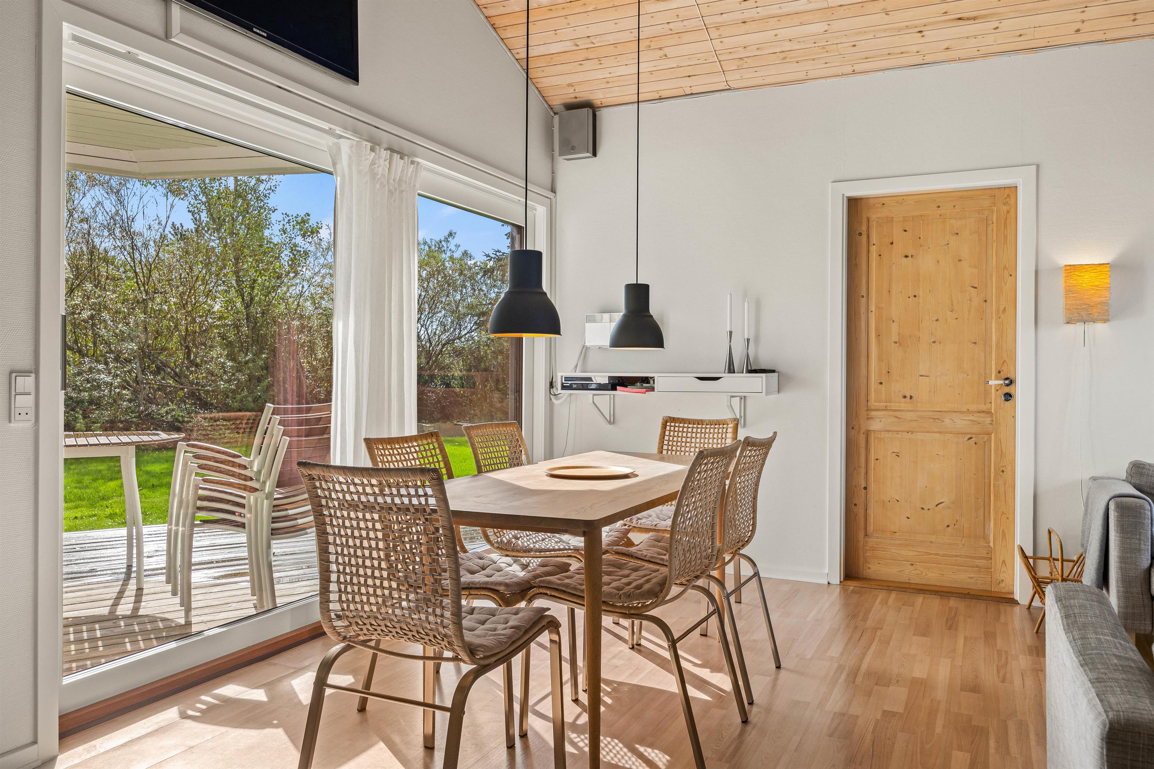 Hele feriehuset er lyst og roligt indrettet, og samlingspunktet bliver uden tvivl alrummet, hvor hele flokken kan samles. I kan lave noget lækkert mad og sammen nyde det omkring spisebordet, mens brændet knitrer i pejsen. Mens opvasken klares i opvaskemaskinen, kan I samle jer i sofaen til brætspils- eller filmhygge.
