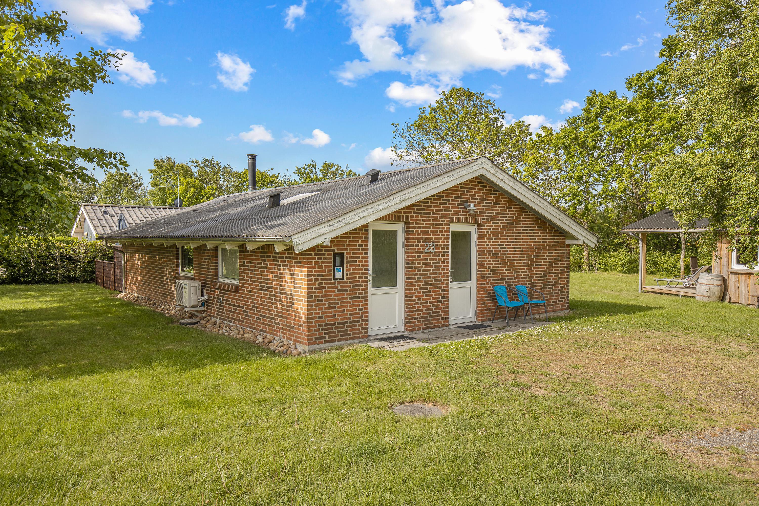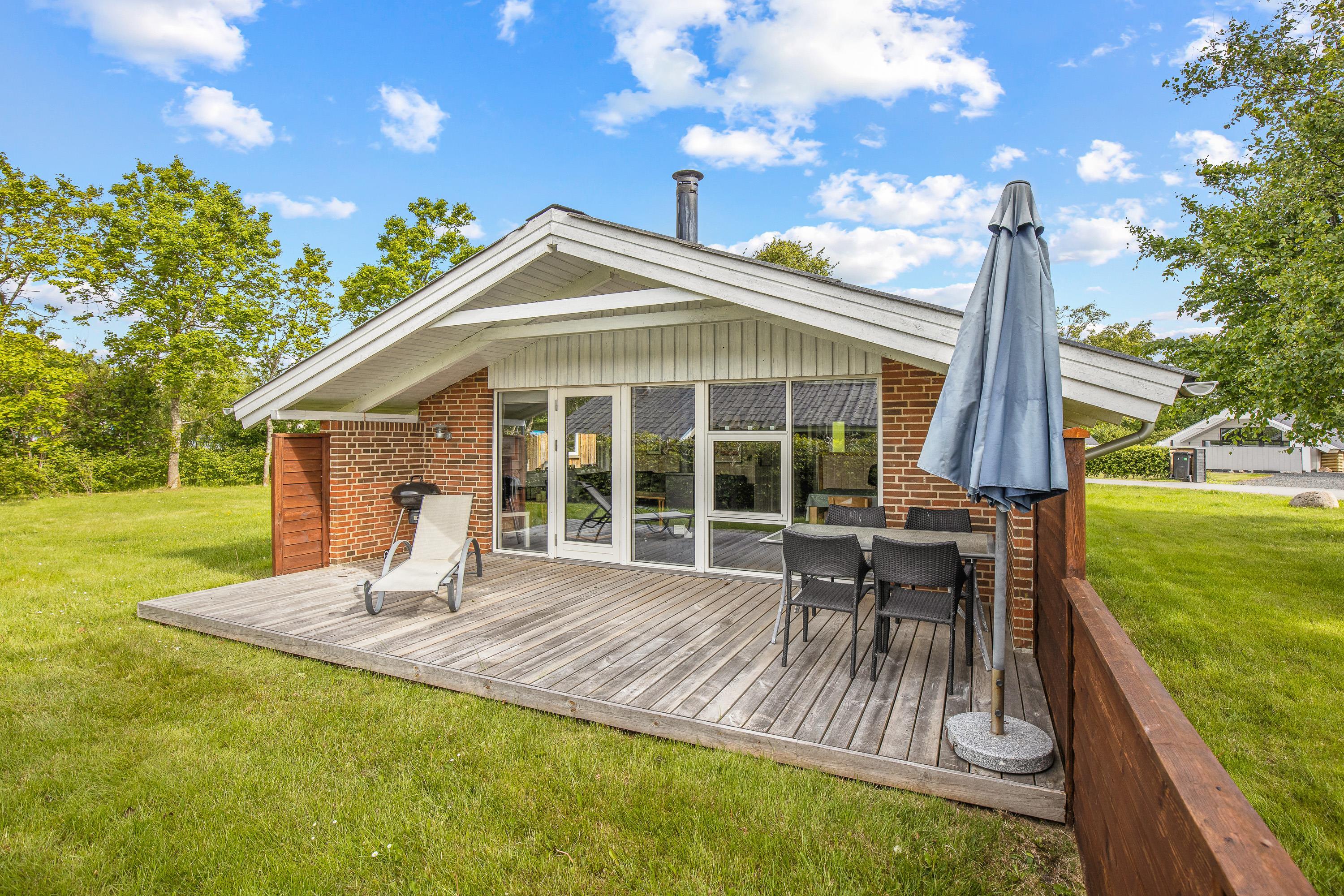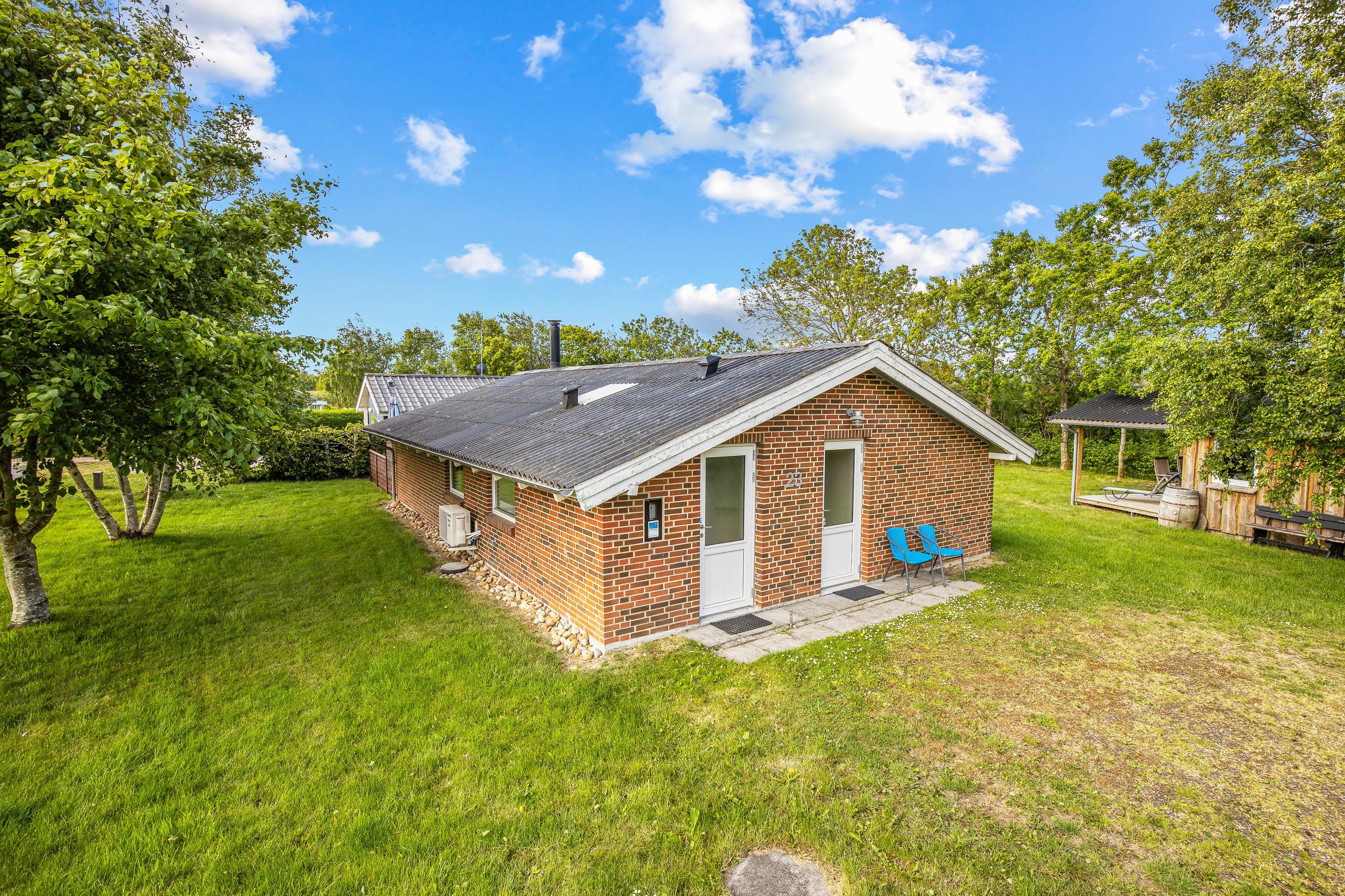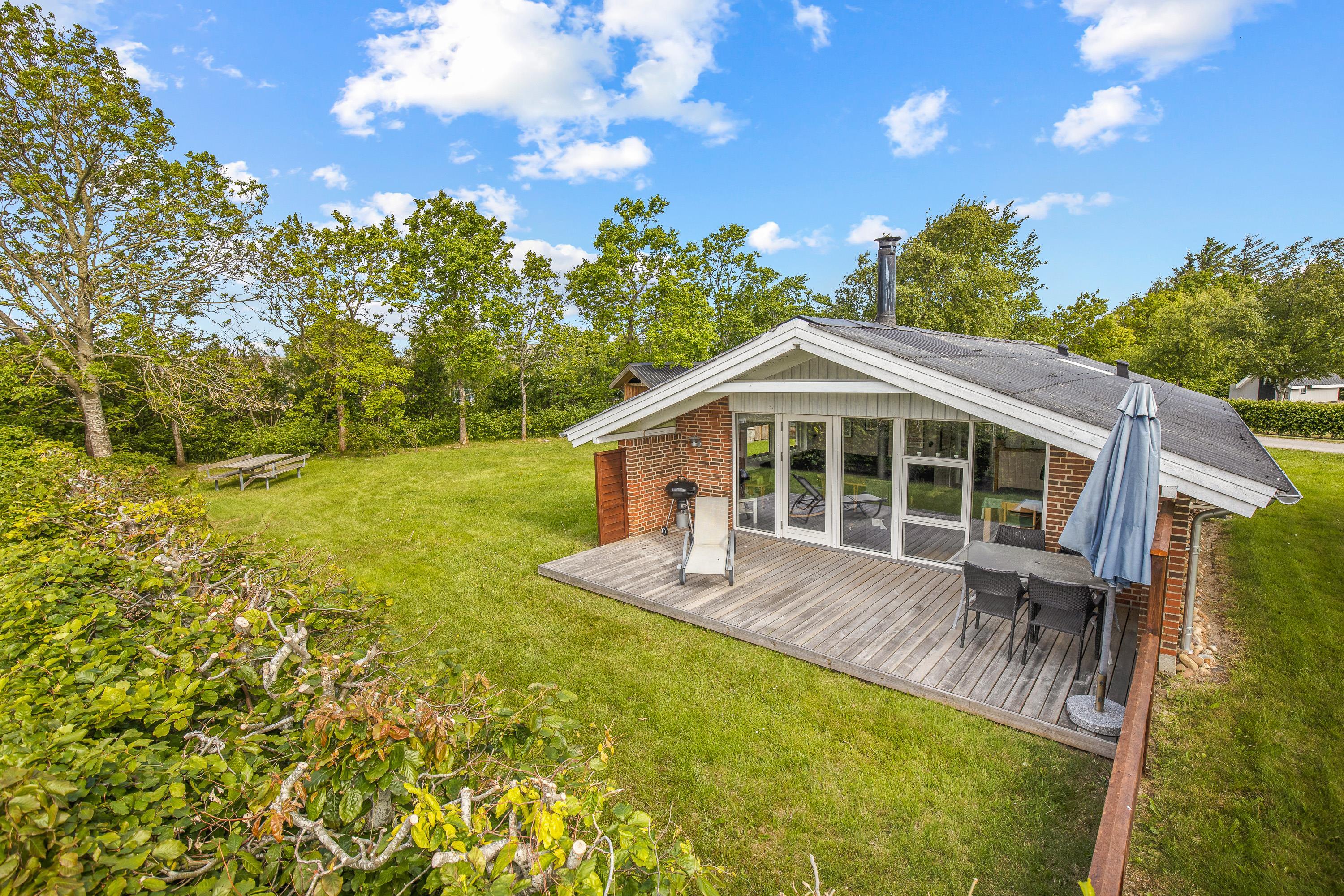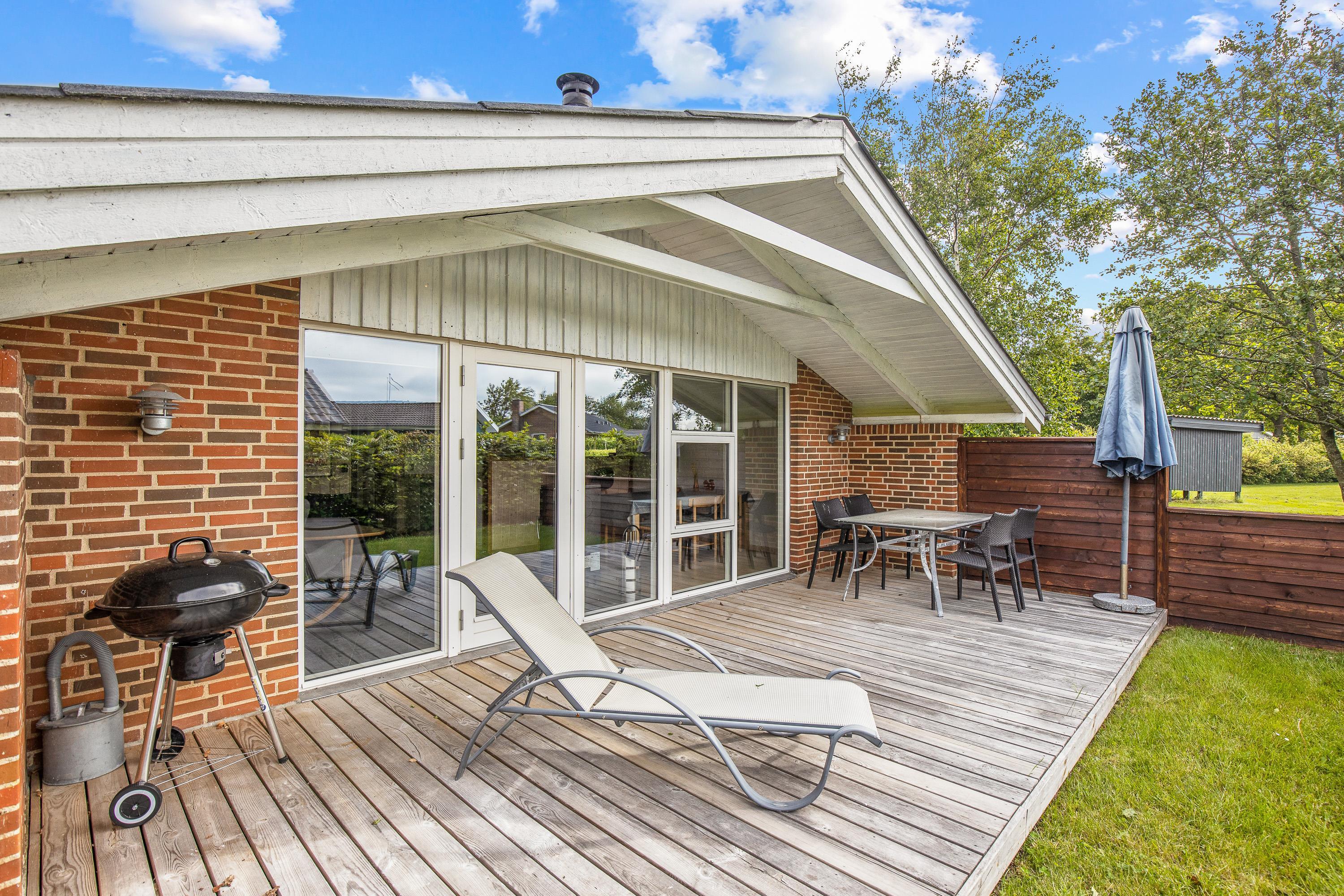Udendørs kan I nyde sommerhusets skønne omgivelser på den rummelige plænegrund, perfekt til afslapning eller leg for både børn og voksne. Den afskærmede og overdækkede terrasse skaber et dejligt uderum, hvor I kan nyde en stille stund med en god bog eller samles omkring middagsbordet til en hyggelig grillaften, uanset vejrets luner.
