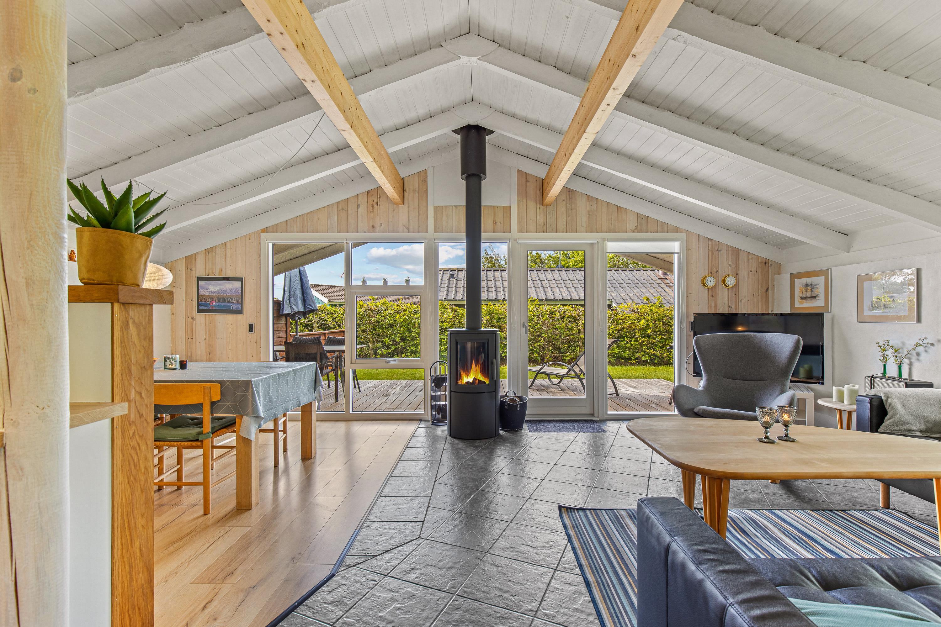 Indenfor byder sommerhuset på en række faciliteter, der sikrer komforten under jeres ophold. Stuen er familiens samlingspunkt, hvor en varm brændeovn skaber en hyggelig atmosfære på kølige aftener. Huset har 2 soverum med i alt 4 sovepladser, rummeligt nok til både familieferier og hyggelige udflugter med venner.