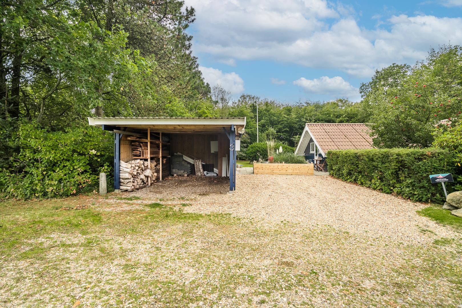 Gæster med elbil kan oplade bilen direkte ved sommerhuset (Type 2-lader), og bilen kan stå trygt i carporten.