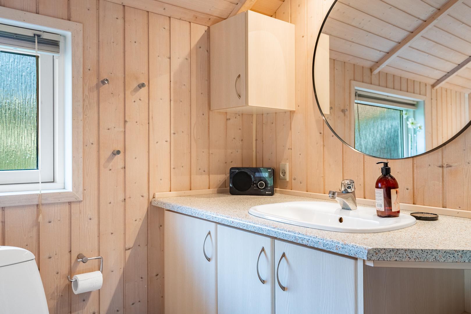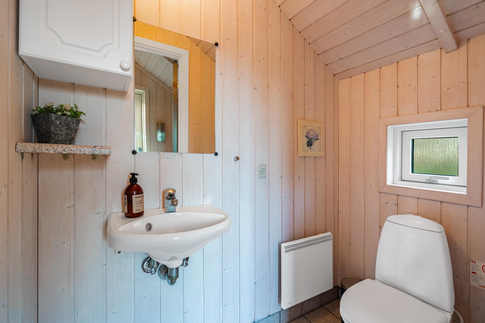 Efter en dag ved fjorden eller stranden kan I lade jer forkæle i spaen eller varme jer igennem i saunaen. Badeværelset har gulvvarme – en luksus på kølige dage – og derudover er der et ekstra gæstetoilet.