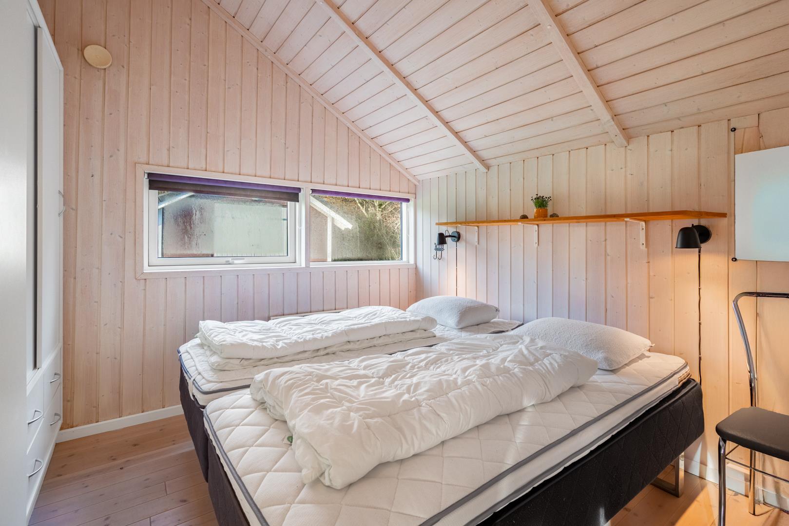 Sommerhuset har tre soveværelser: to med dobbeltsenge og ét med to enkeltsenge – perfekt til familie eller venner.