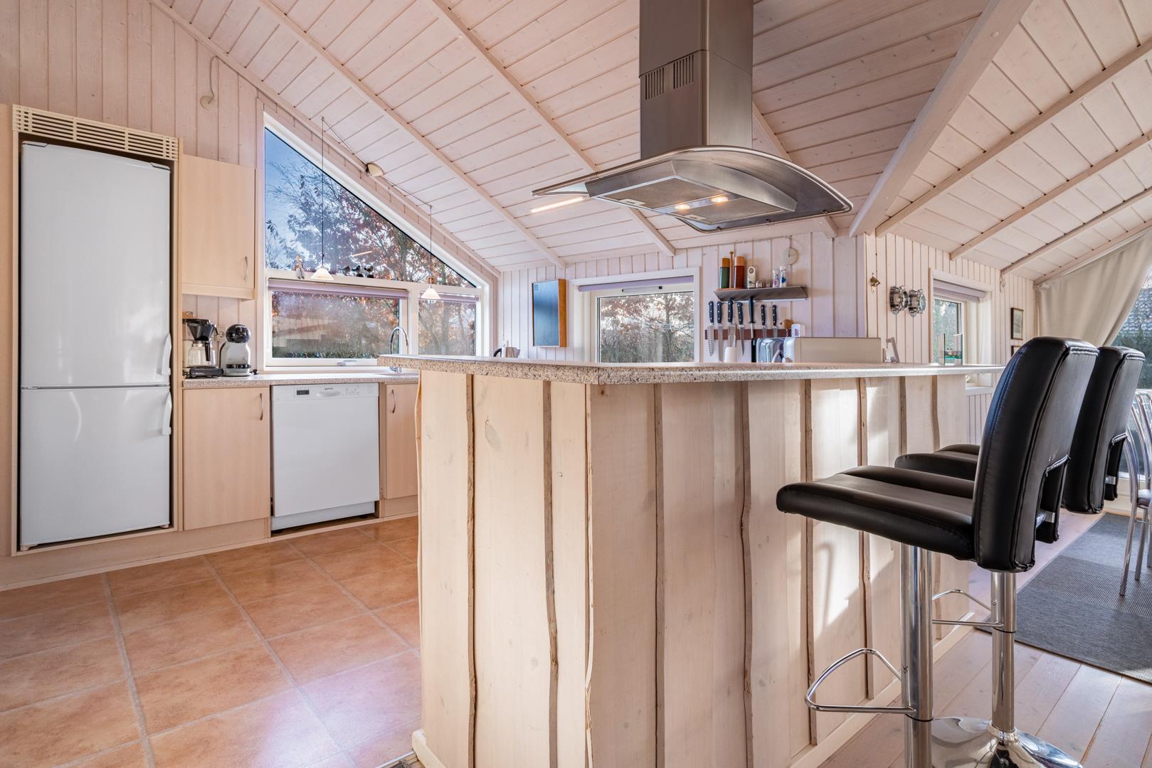 Det åbne køkken er veludstyret med opvaskemaskine, vaskemaskine og tørretumbler – så I får mere tid til det vigtigste: ferie og hygge.