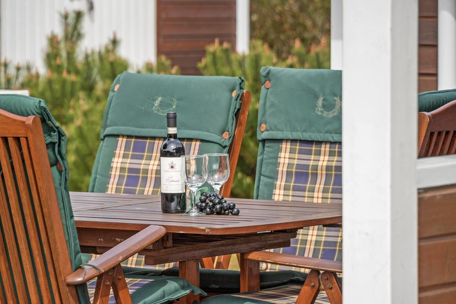 Udendørs finder I en dejlig, lukket have med overdækket terrasse, gynge og sandkasse – ideel til børnefamilier eller jer, der bare nyder udelivet. Her kan I grille, spise sammen eller læne jer tilbage og nyde den friske havluft.