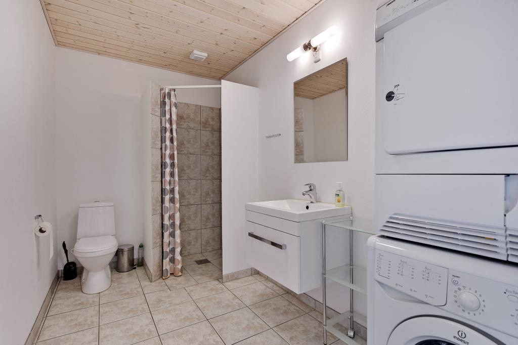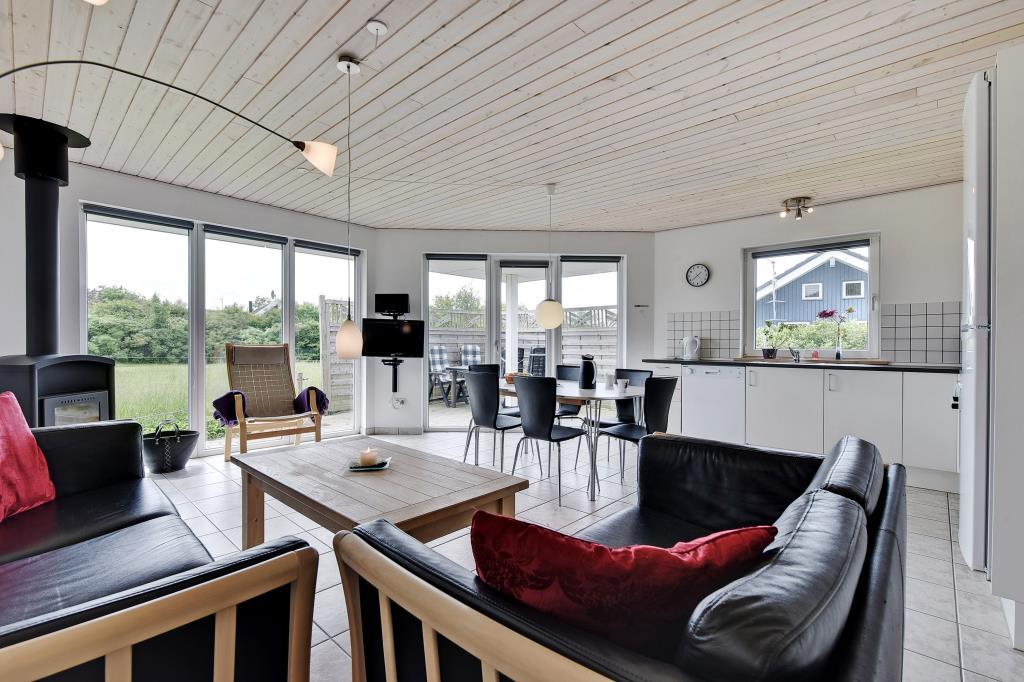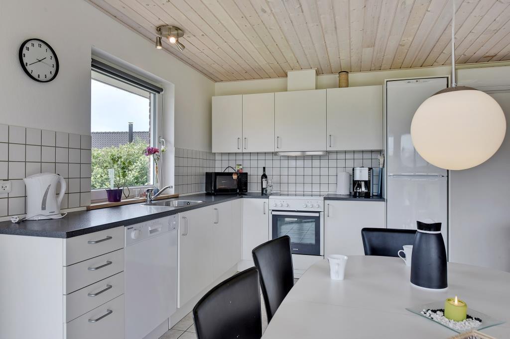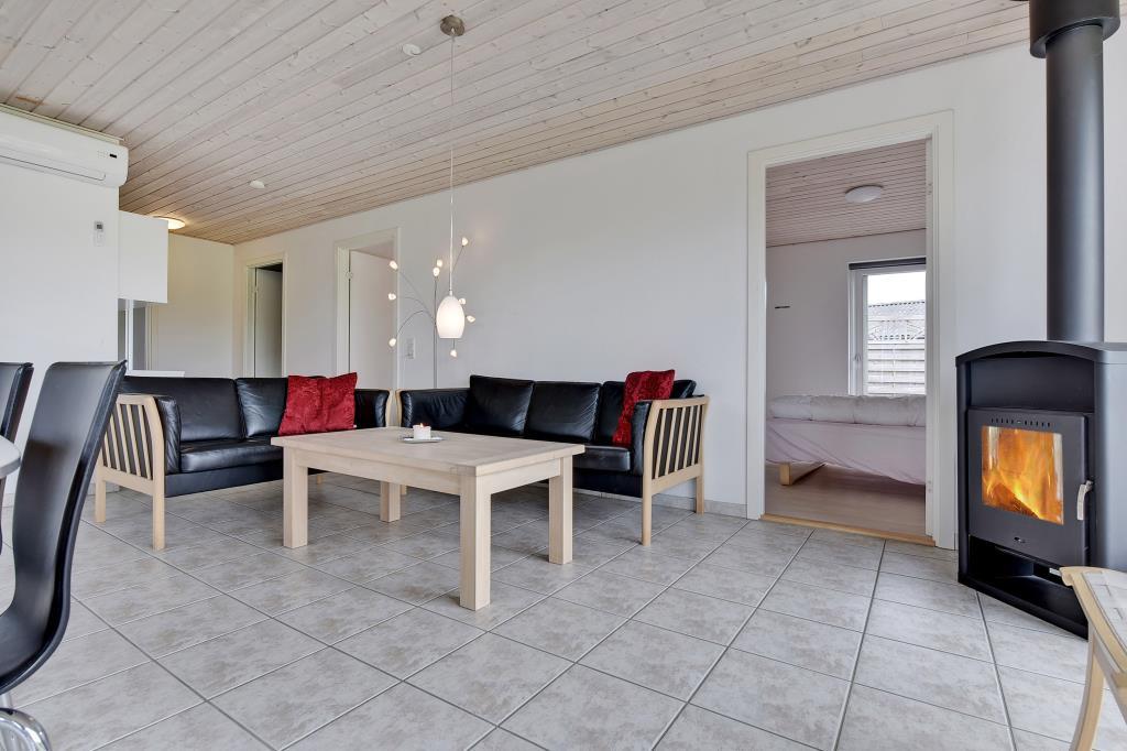 I stuen indbyder brændeovnen til hyggelige aftener – måske med et glas vin, mens flammerne knitrer. Det moderne køkken er fuldt udstyret med alt, hvad du skal bruge, herunder opvaskemaskine, så ferien bliver både bekvem og afslappet. Der findes også vaskemaskine og tørretumbler – praktisk, hvis ferien varer lidt længere.