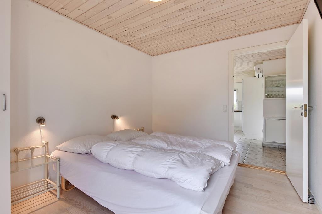 Sommerhuset er ideelt til 4 personer og rummer to soveværelser med dobbeltsenge – perfekt til par eller en lille familie. Gulvvarmen i stue, køkken og bad sørger for behagelig varme, selv når vinden rusker udenfor, og den energieffektive varmepumpe bidrager til et dejligt indeklima året rundt.