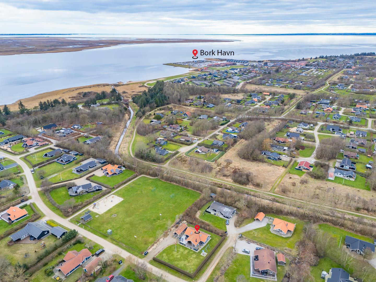 Strandvænget 27 ligger i et af Bork Havns mest attraktive områder, hvor fjord, natur og ro går hånd i hånd.
