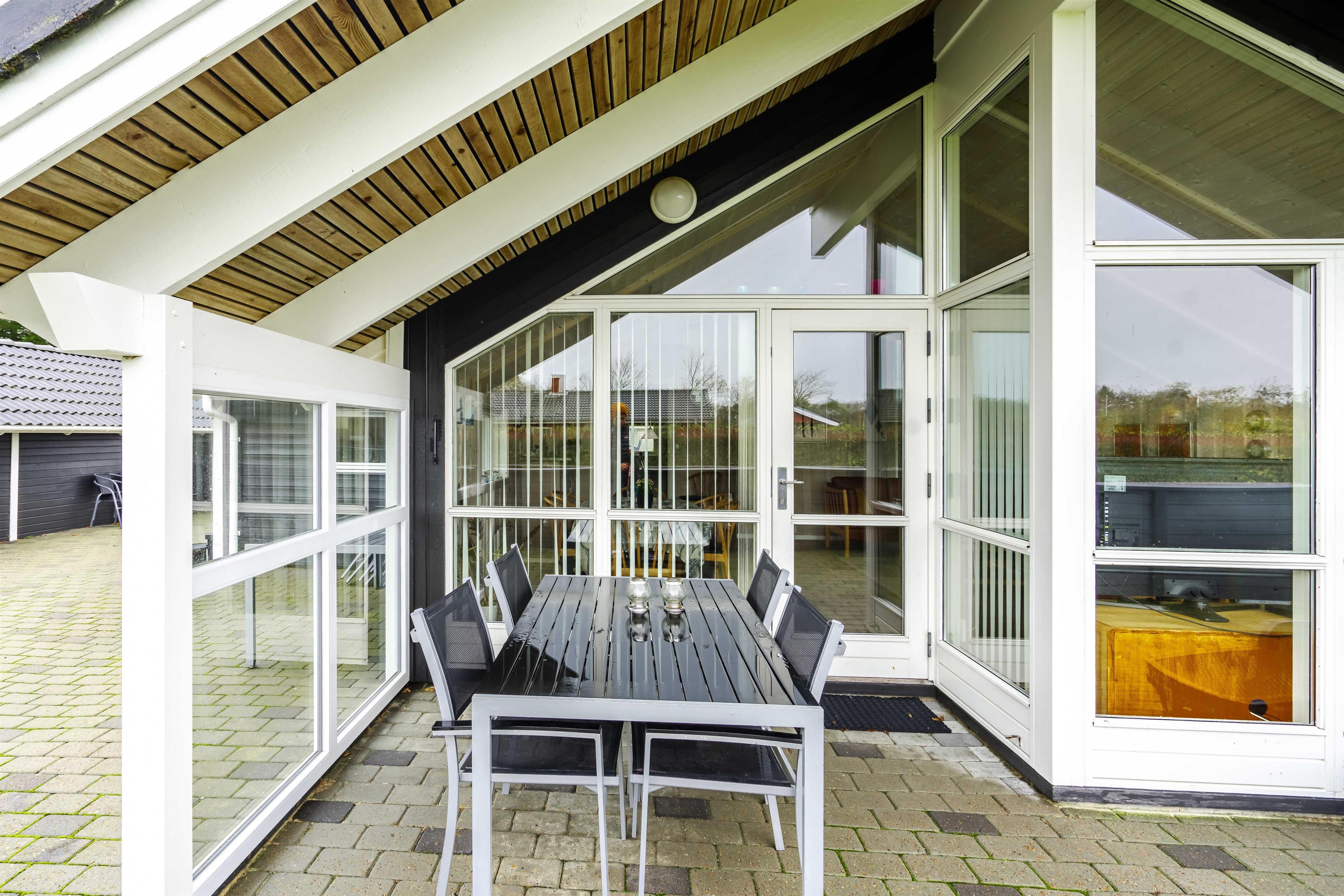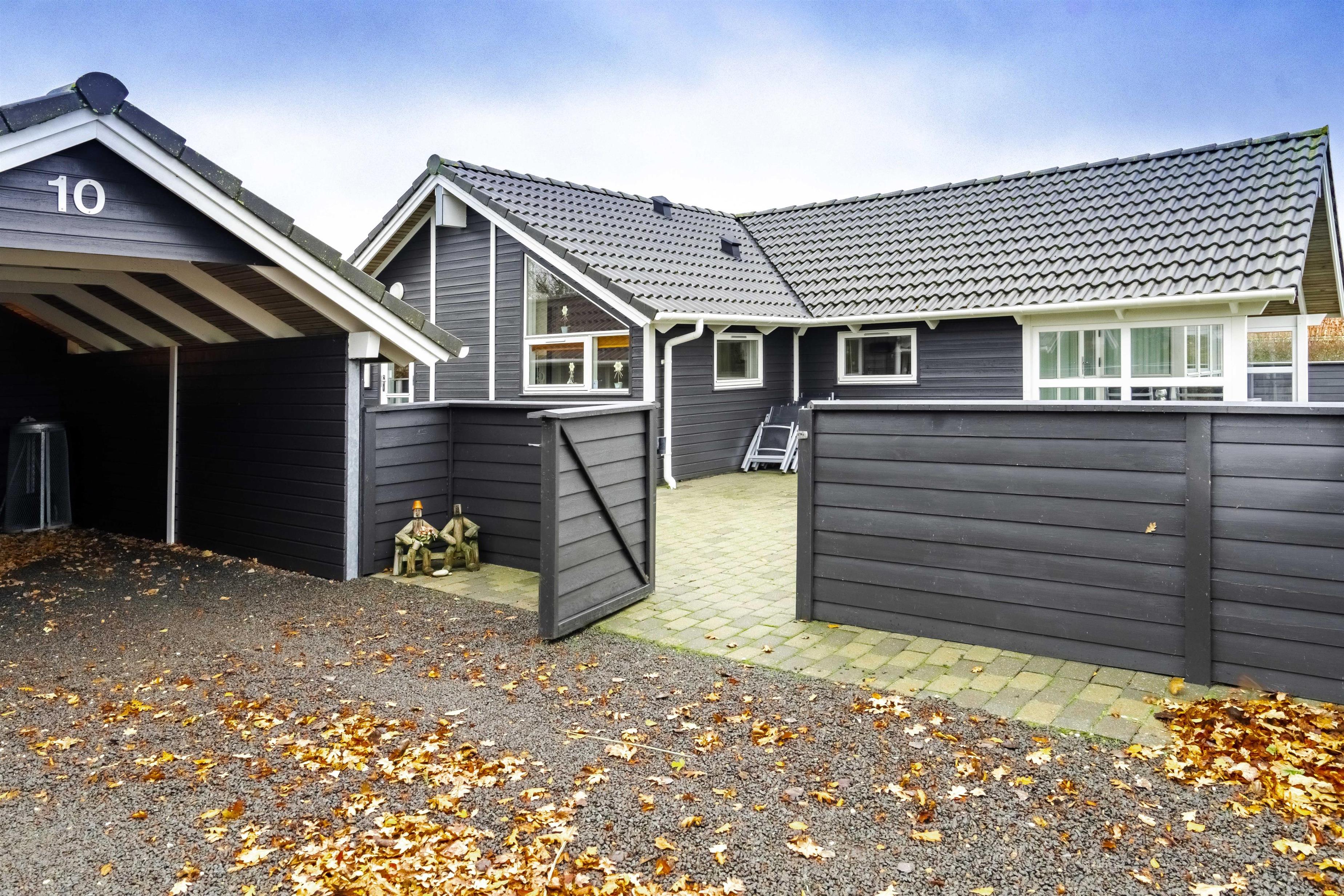 Den indhegnede grund giver masser af plads til leg og afslapning – og jeres hund kan trygt løbe frit. På den lukkede terrasse kan I spise morgenmad i læ for vinden eller nyde et glas vin om aftenen. Der findes også en overdækket terrasse, så ferien kan fortsætte udendørs – uanset vejret.