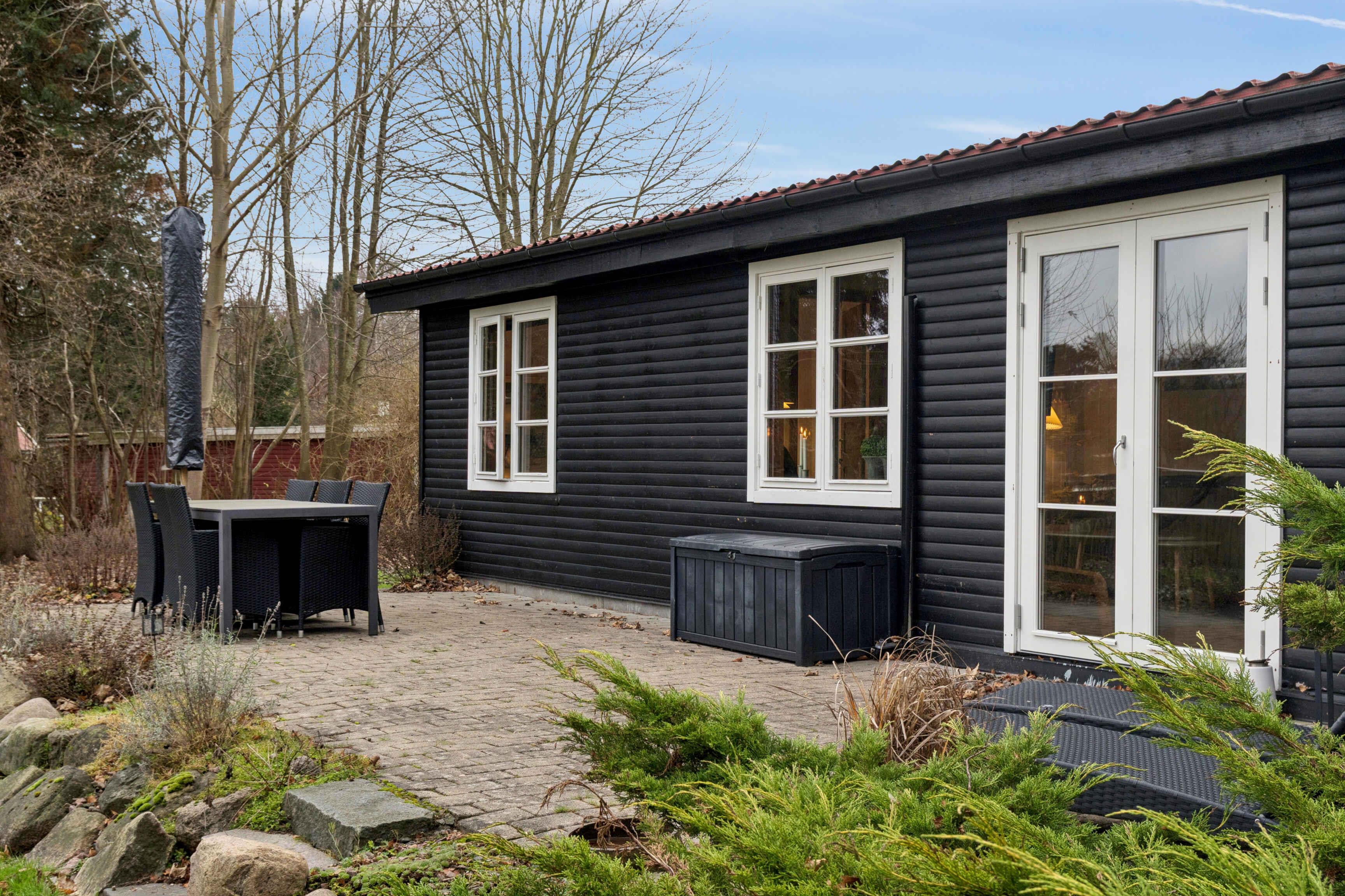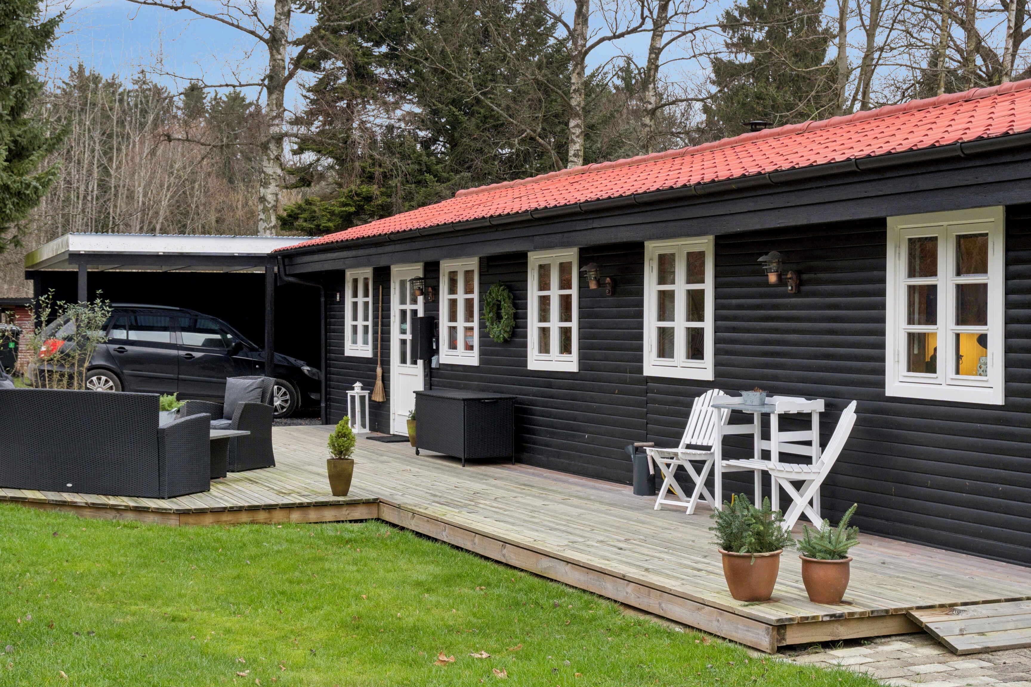 Hyggeligt sommerhus i Borup med stor terrasse, badesø og oplader til elbil – perfekt til familie og naturglade gæster.
