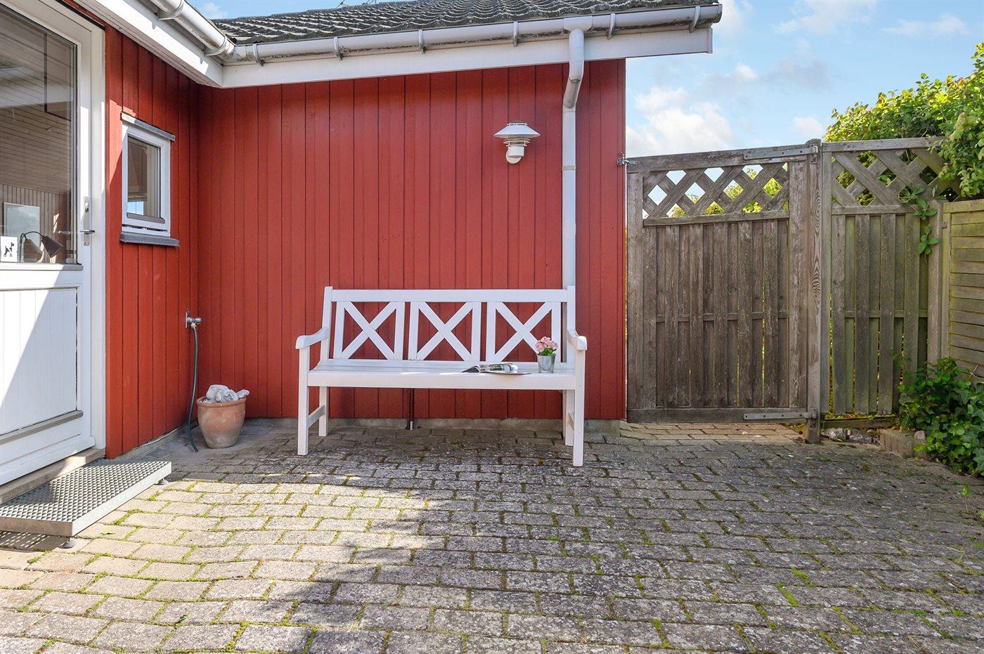 Ferieboligen er beliggende på en 600 m² stor havegrund. Der er 5 m til havet. Nærmeste forretning er beliggende i en afstand af 10000 m. Til ferieboligen hører 30 m² terrasseareal. Der er installeret stik til opladning af elbil. Type 2 stik. Med 11 kW ladeeffekt. Parkering ved ferieboligen.