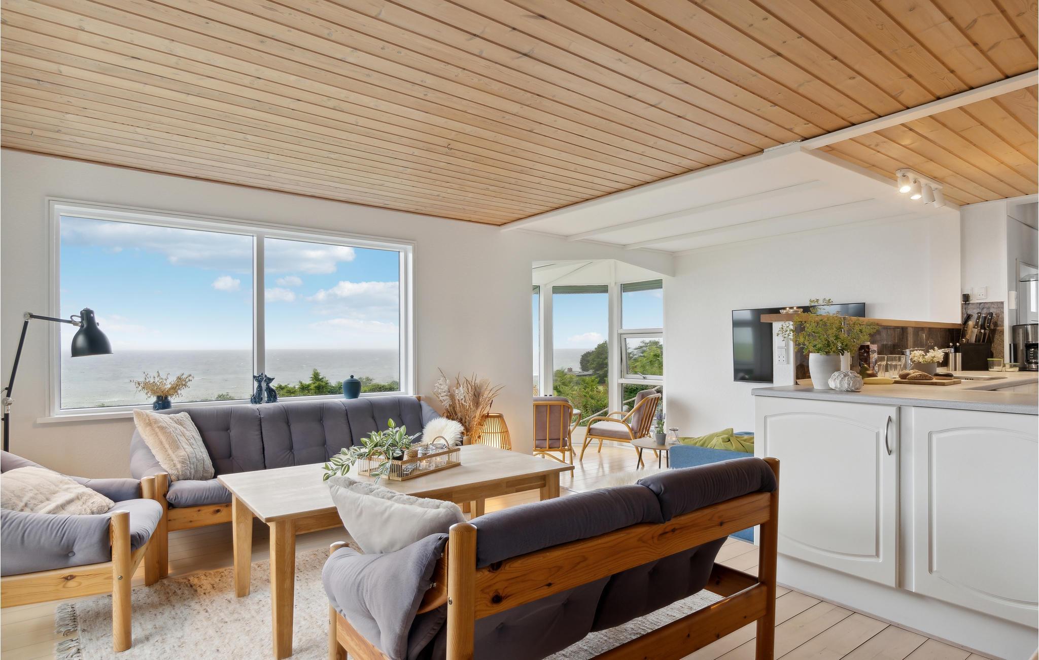Flot feriehus tæt på vandet med panoramaudsigt over Storebælt og hyggelig atmosfære.